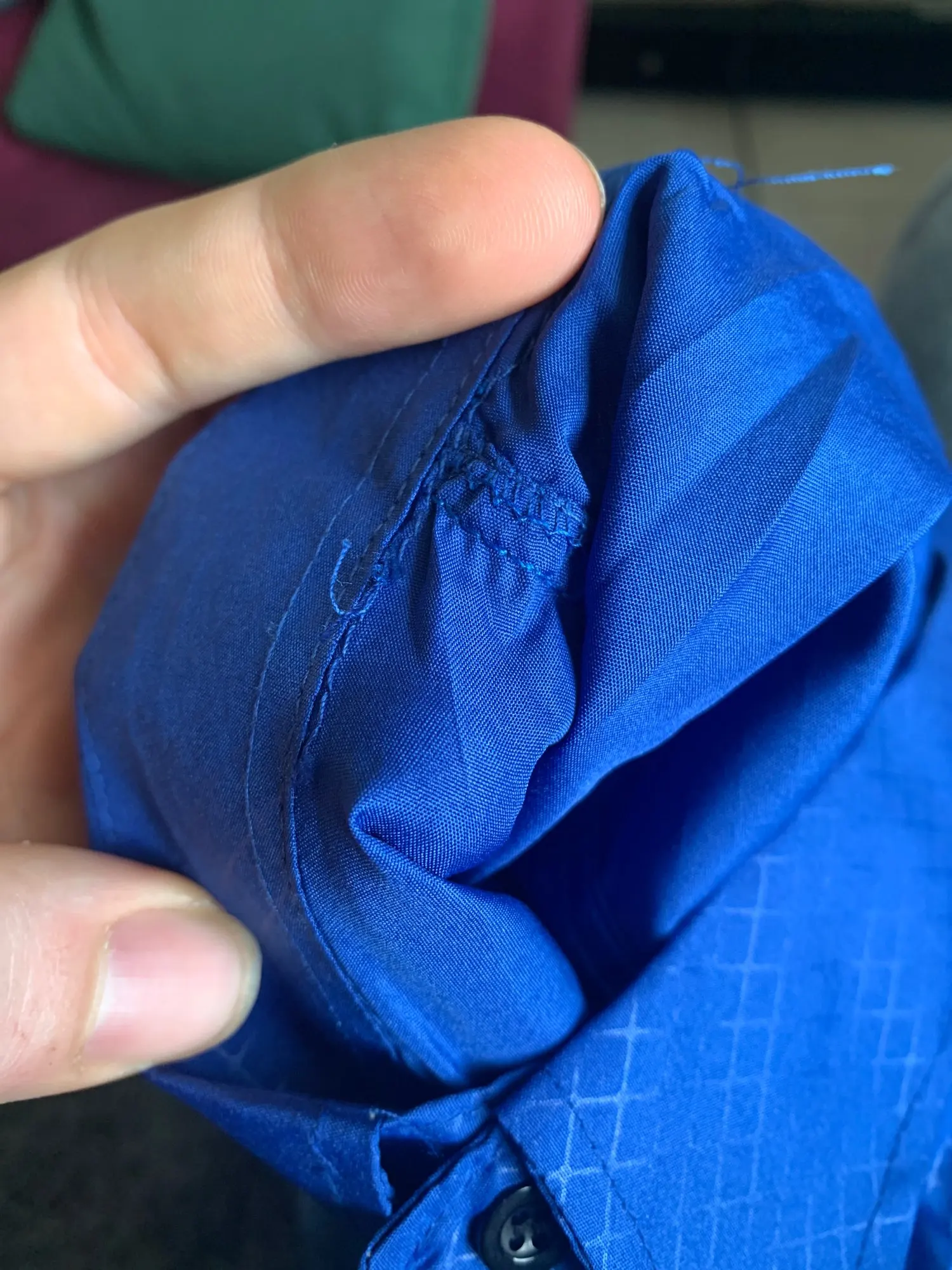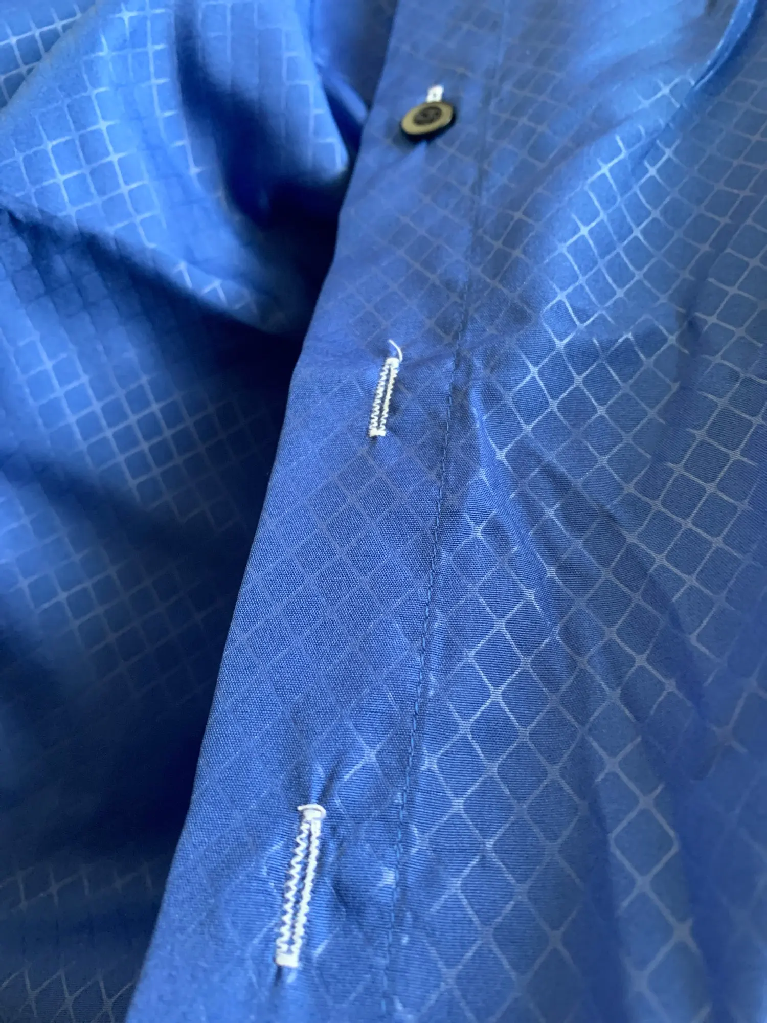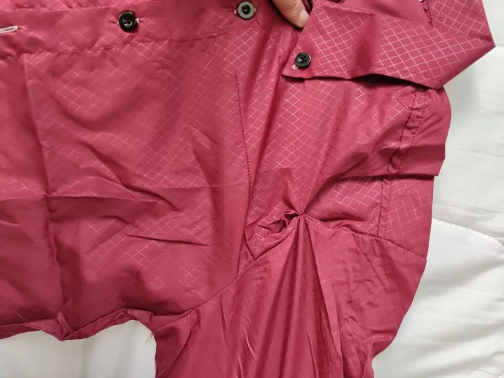 Очень тонкая рубашка, все пуговицы свободные и плохо сшитые.