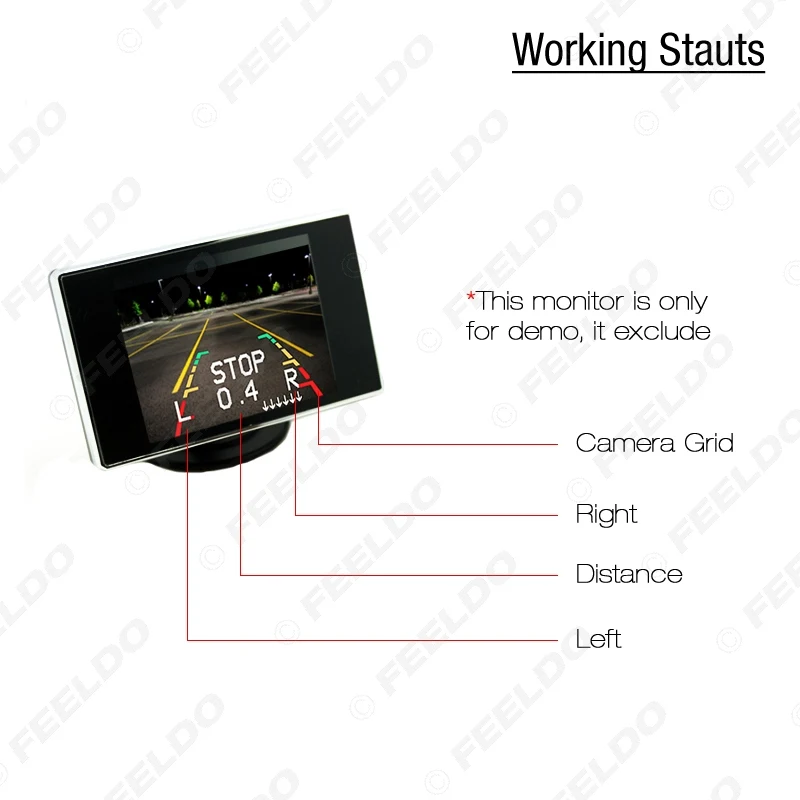 Эта двойная система датчиков парковки включает три части:Часть I):6-Сенсор передние и задние двойные и круговым обзором на Сенсор резервный радар парковкиЧасть II): 3,5 дюймовая цифровая на тонкопленочных транзисторах на тонкоплёночных транзисторах ЖК-дисплей монитор ДисплейЧасть (III): 16,5 мм автомобиля Оригинал/зеркальное отображение переключаемый КамераI)6-Сенсор передние и задние двойные и круговым обзором на Сенсор резервный радар парковкиВключите автоматически во время торможения или заднего хода, индикатор направления влево и вправоИ изображение препятствий и отображение расстояния на мониторе, звуковой сигналИ голосПредупреждение на английском языке. Он может обнаруживать неисправные датчики. EmbededДатчик типа в 10 цветах (цвет по умолчанию: черный), если вам нужен другой цвет, оставьте намСообщений.Как это работает?(1) Красный провод подключается к ACC + 12 В.(2) черный провод подключается к-GND.(3) белый провод подключается к тормозному светильник + 12 В анод.(4) черный/белый провод подключается к резервному светильник + 12v анод.(5) когда вы выбираете обратную передачу, резервный светильник включается,Для работы были активированы задние 4 парковочных датчика (A,B,C,D) и задняя камера.(6) когда вы нажимаете педаль тормоза, тормозной светильник включается, передние 2 датчика парковки (E,F)И фронтальная камера была активирована для работы.(7) когда вы выбираете обратную передачу и нажимаете педаль тормоза, работают только задние 4 датчика парковки (A,B,C,D).Технические характеристики:Номинальное напряжение: 12 ВРабочий диапазон: 10,5 ~ 16ВНоминальный ток: 40 ~ 800 мАРассеивание мощности: 5 ВтРасстояние обнаружения: 0,30 ~ 2 м (сзади)/0,3 ~ 0,8 м (спереди)Ультразвуковая частота: 40 кГцРабочая температура: -30 ~ + 70 градусов ЦельсияТовар включает в себя:1 x основной коробки6 x датчики3 соединительных кабеля RCA1 x Динамик1 х av-адаптер1 x Мощность шнур1x22 мм дрель(II) 3,5 дюймовая цифровая на тонкопленочных транзисторах на тонкоплёночных транзисторах ЖК-дисплей монитор ДисплейРежим TFT дисплея: 4:3Пиксели: 320*240 RGBФормат: PAL или NTSCПитание: DC12V(+/-10%)Потребляемая мощность:<5 ВтКонтраст: 350:1Два видео входЖК-дисплей можно поворачивать с помощью соединения основанияРабочая температура:-10-+ 50Температура хранения:-20-+ 60Размер: 110 мм x 67 мм x 14 ммТовар включает в себя:1x3,5 дюймов ЖК-дисплей монитор1 х шнур питания(III): 16,5 мм автомобиля Оригинал/зеркальное отображение переключаемый КамераПоддержка обратного/зеркального изображения или оригинальная функция переключения изображенияПоддержка дистанционной линии сетки переключаемая функцияВодонепроницаемый IP Рейтинг: IP68Характеристики изображения: CCD (Сделано в Японии)ТВ система: NTSC (если вам нужен PAL, пожалуйста, отправьте нам сообщение)Эффективные пиксели: NTSC:728*582 (PAL:728*512)Вид ангела: 170 °Горизонтальное разрешение (ТВ-линии):480 ТВ-линийМинимальное освещение: 0.6 люкс/F1.2Потребление тока: макс. 120 мАПитание: DC12VРабочая температура:-20C ° ~ 70C °, Макс Rh95 %Температура хранения:-40C ° ~ 80C °, Макс Rh95 %Товар включает в себя:2x16,5 мм Оригинал/зеркальное отображение переключаемый камеры2 x Мощность шнур2 х RCA кабель