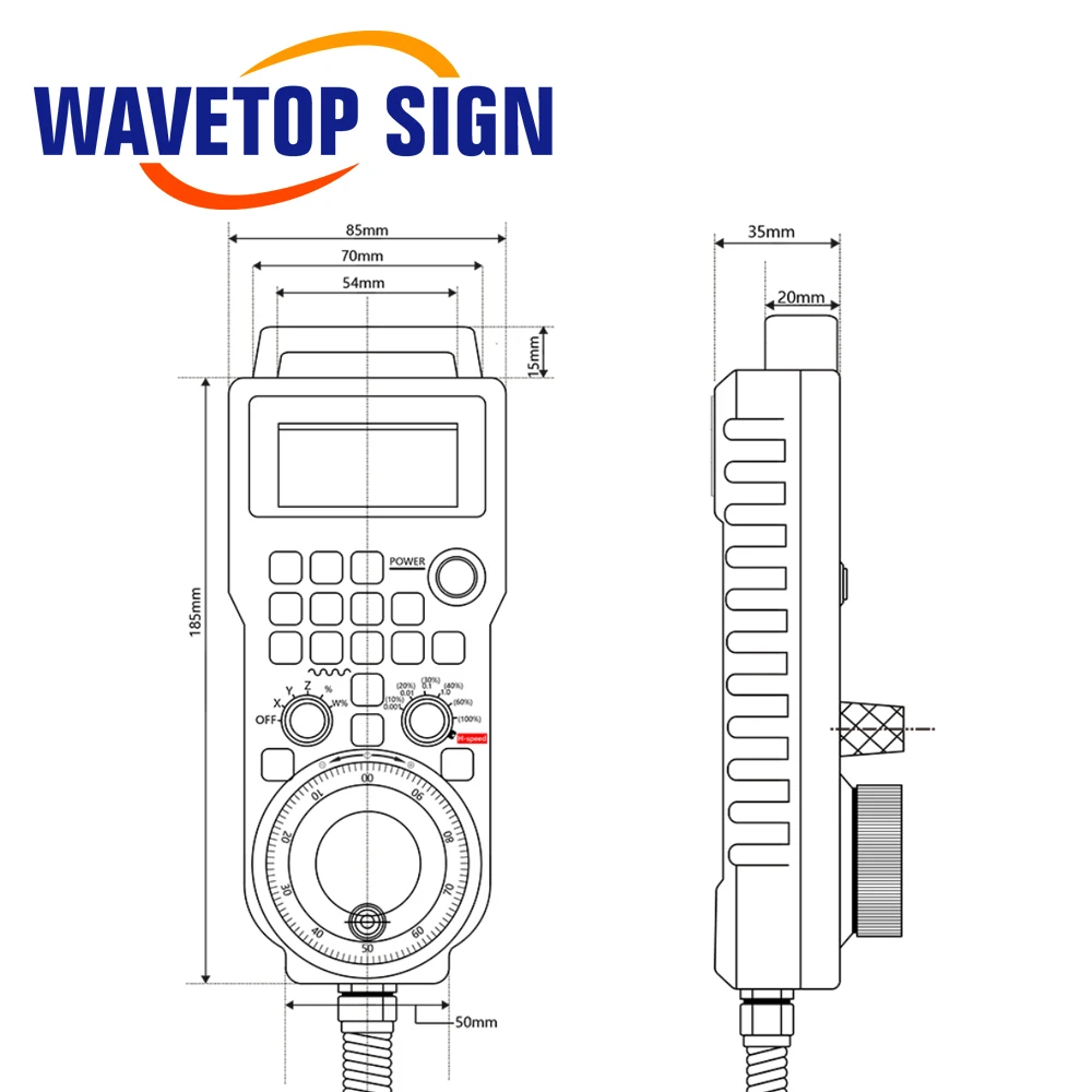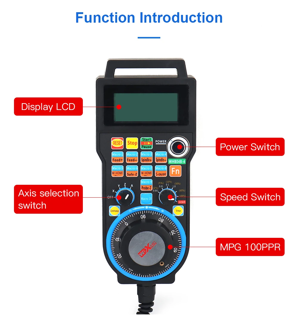 2. Переключатель диапазона выбора оси/скорости контролирует выбор оси переключатель диапазона реализует закрытие электронного маховика и соответствующий X Y Z A B C контроль выбора функции. Увеличение выбирает выбор шага переключателя диапазона.