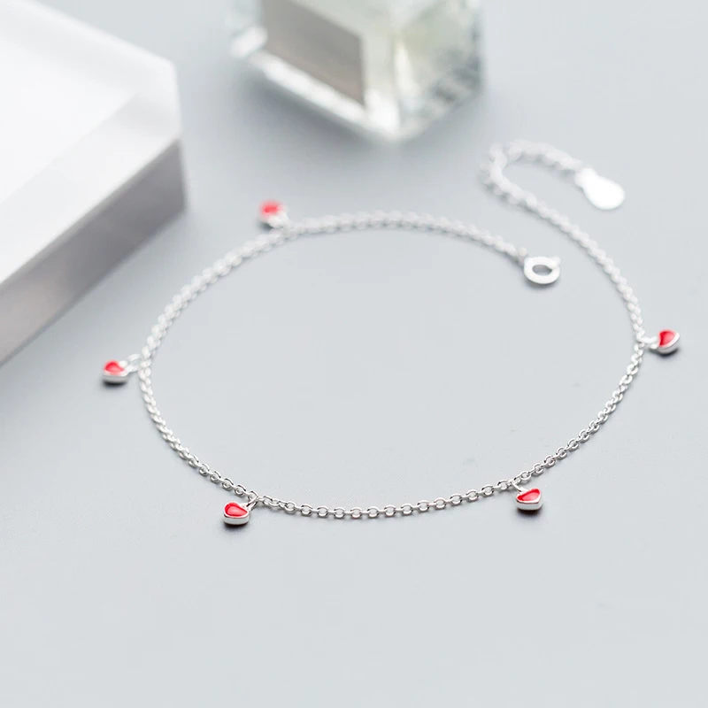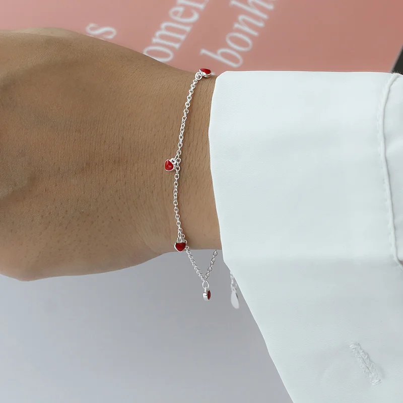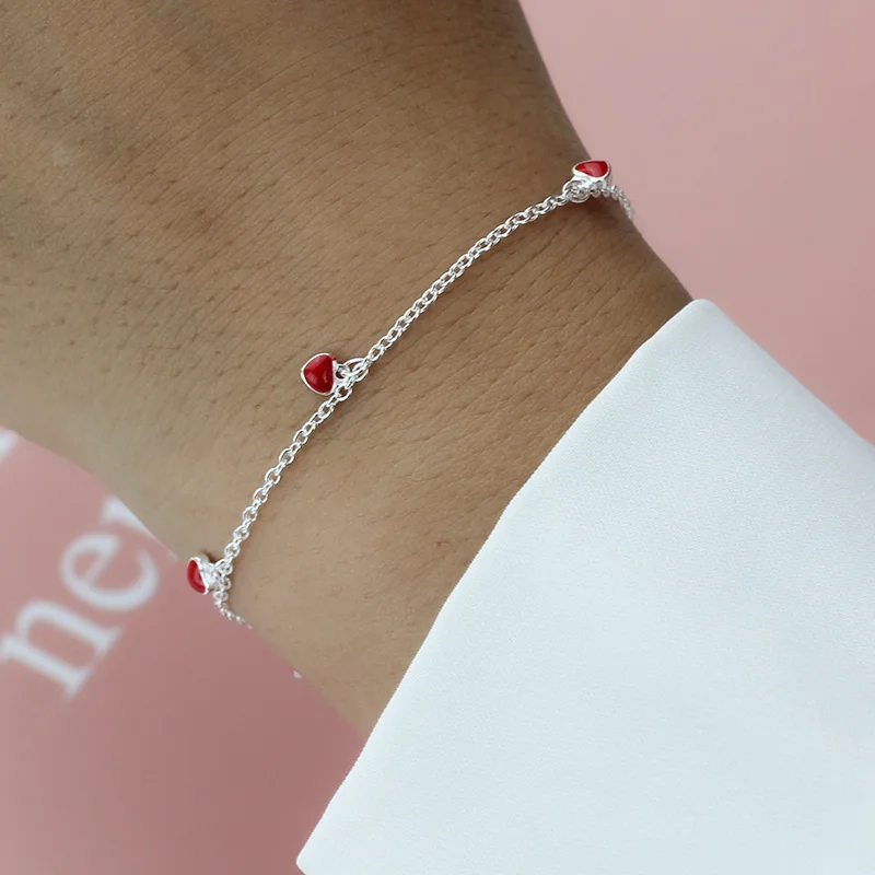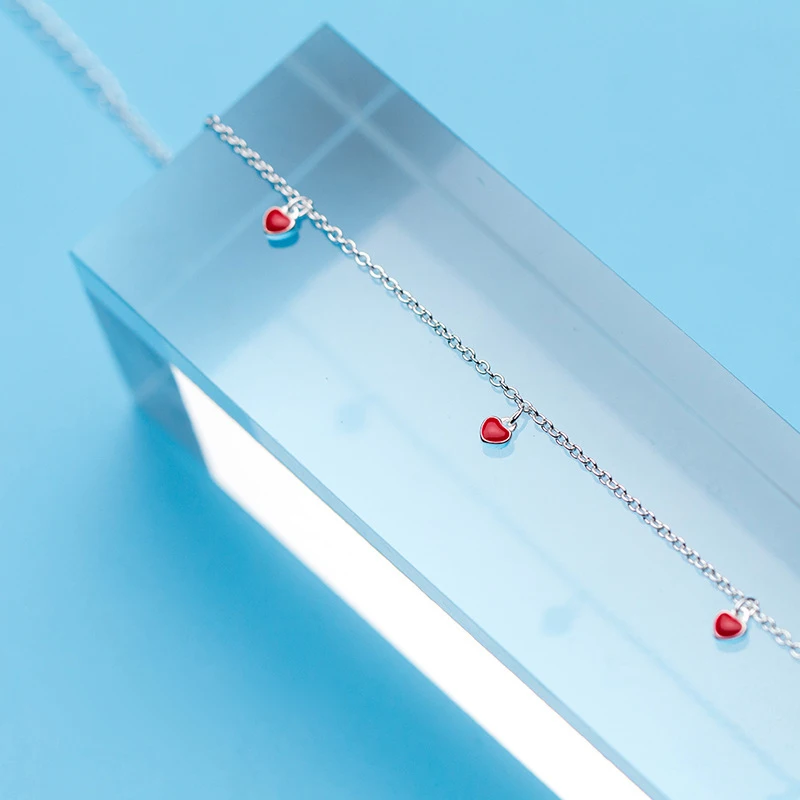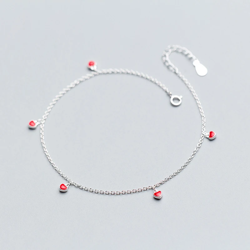 TrustDavis 100% Настоящее серебро 925 пробы, Модные женские ювелирные изделия, милый браслет с 5 красными сердечками для женщин из стерлингового серебра DS600