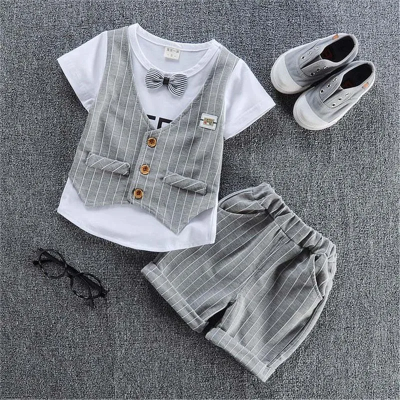 Рубашка и шорты для мальчиков BibiCola, повседневный комплект из 2 предметов, из хлопка, для малышей