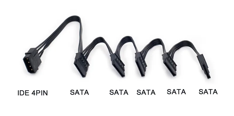 Кабель питания RGEEK IDE Molex, 4-контактный сплиттер для жесткого диска, SATA 1-5, 18AWG, черный