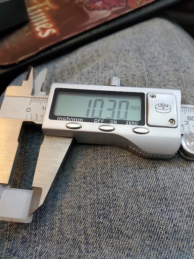 Слишком маленький. Мой пластиковый кювет фактическое измерение 10,5 мм Внутренний размер ("номинальной"-10 мм). Эти Чехлы должен подойти по крайней мере немного уютно; Тем не менее они слишком малы (они просто отваливаются). Спецификация для эта кепка показано, как 10,7 мм (в нижней части с коническим отверстием производства-так верх должен быть еще более, чем 10,7 мм). Тем не менее, фактические размеры этой шляпки 9,64 мм в нижней части с коническим отверстием производства и 10,31 мм в верхней части с коническим отверстием производства (смотрите фотографии). Даже если мой кюветы имеет точную внутренний размер 10,00 мм, эти Чехлы, скорее всего, только в том случае, сидят на ноге очень свободно (в том случае, если вообще). Итак... Они не подходят к моему кюветы вообще. Мне нужно "ШИМ» каждый из них по размеру.