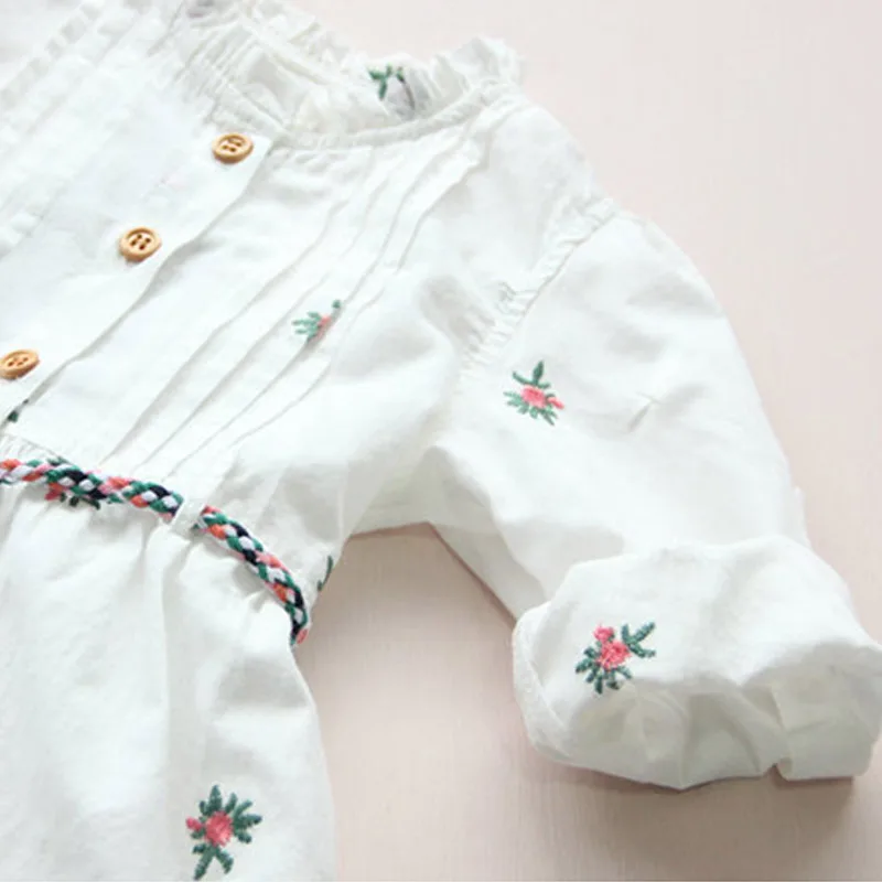 2021 весенне-Осенняя детская одежда для девочек белые хлопковые платья с вышивкой и длинными короткими рукавами и поясом для маленьких девочек