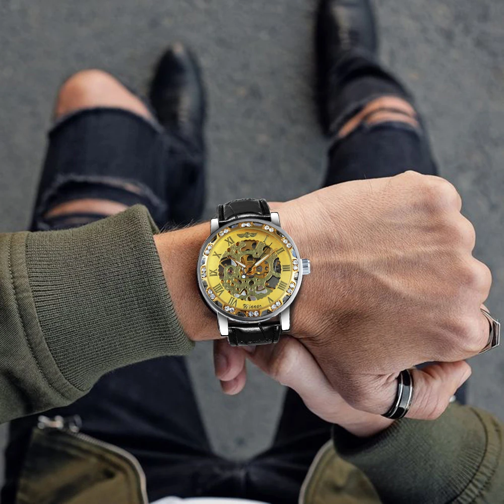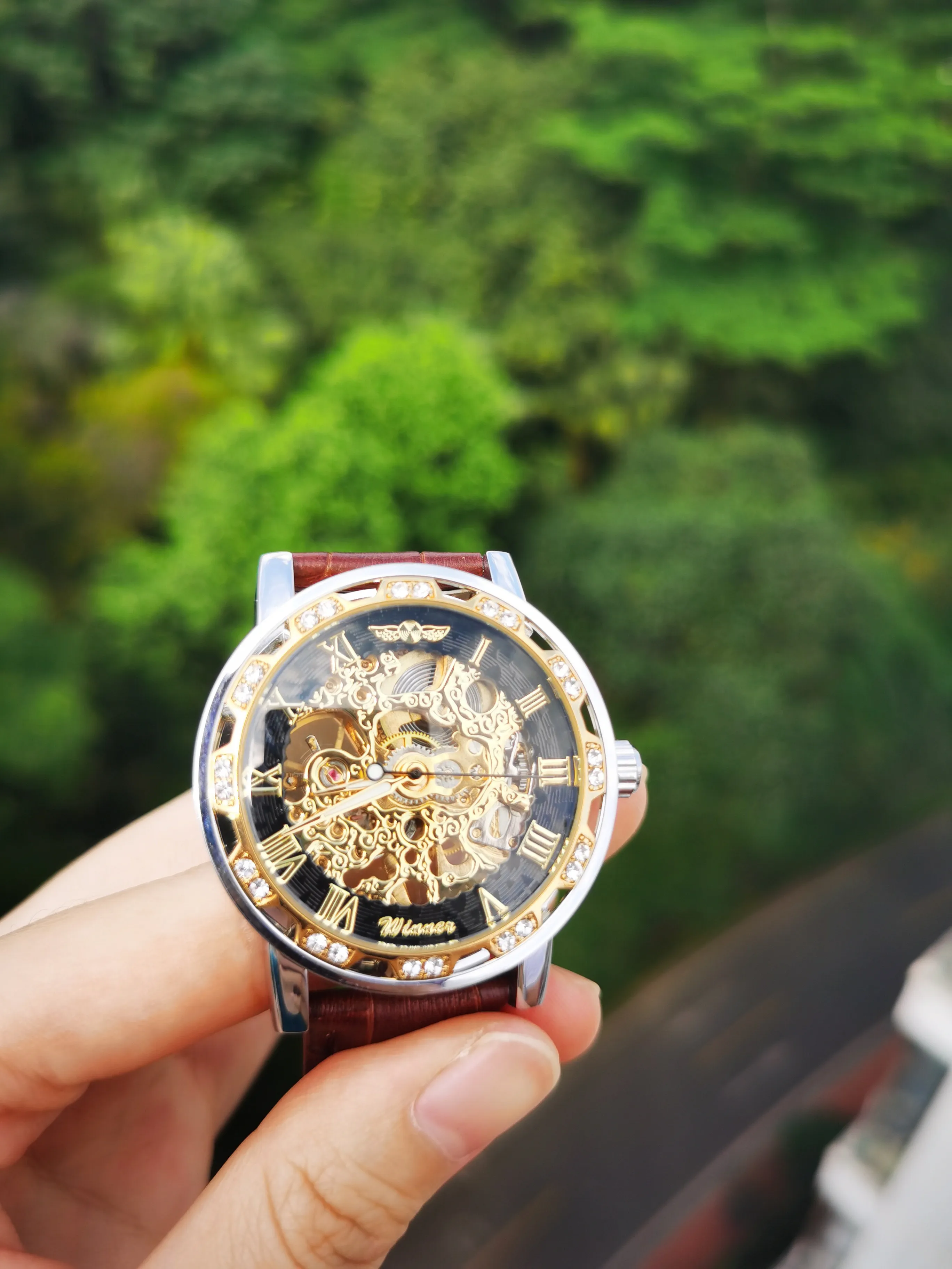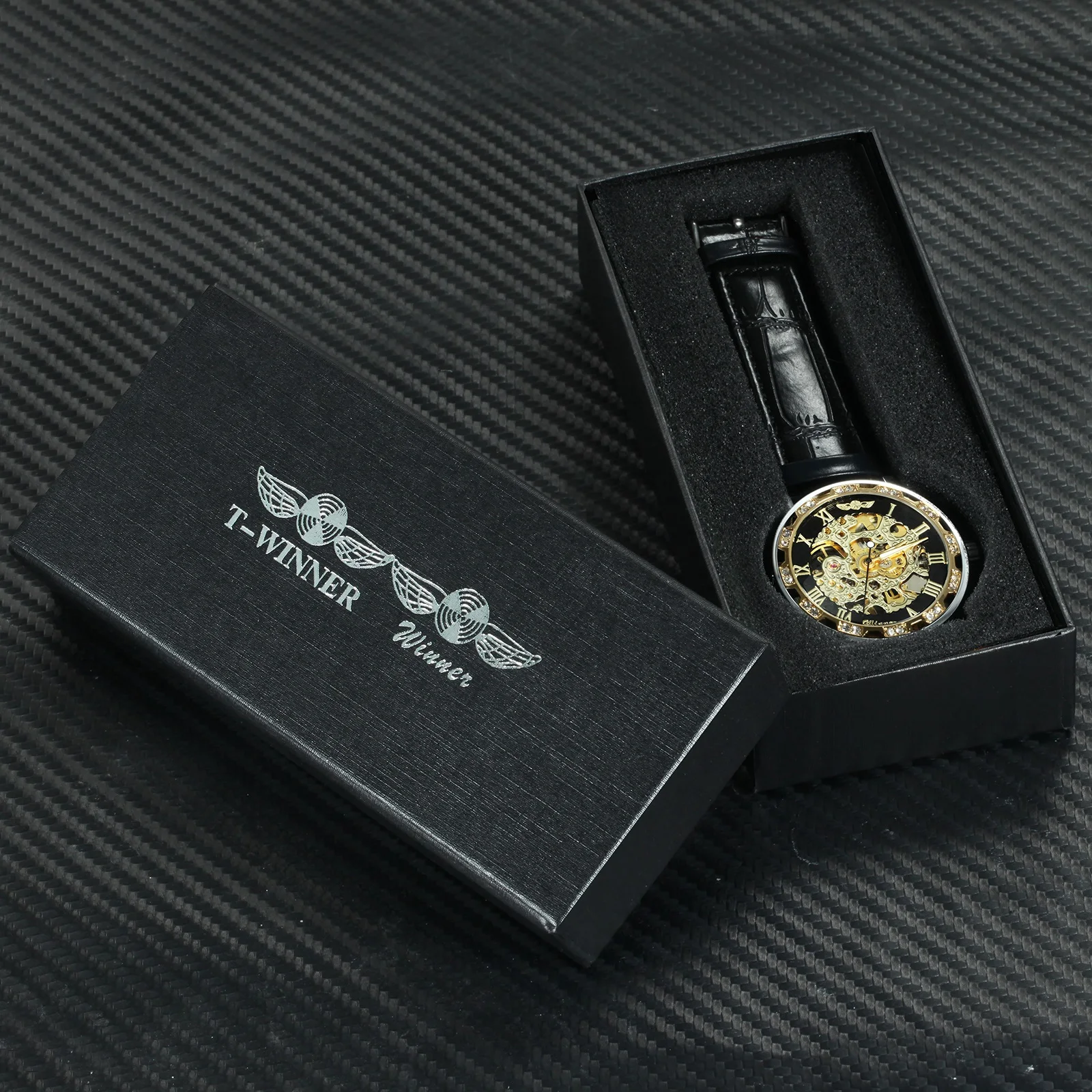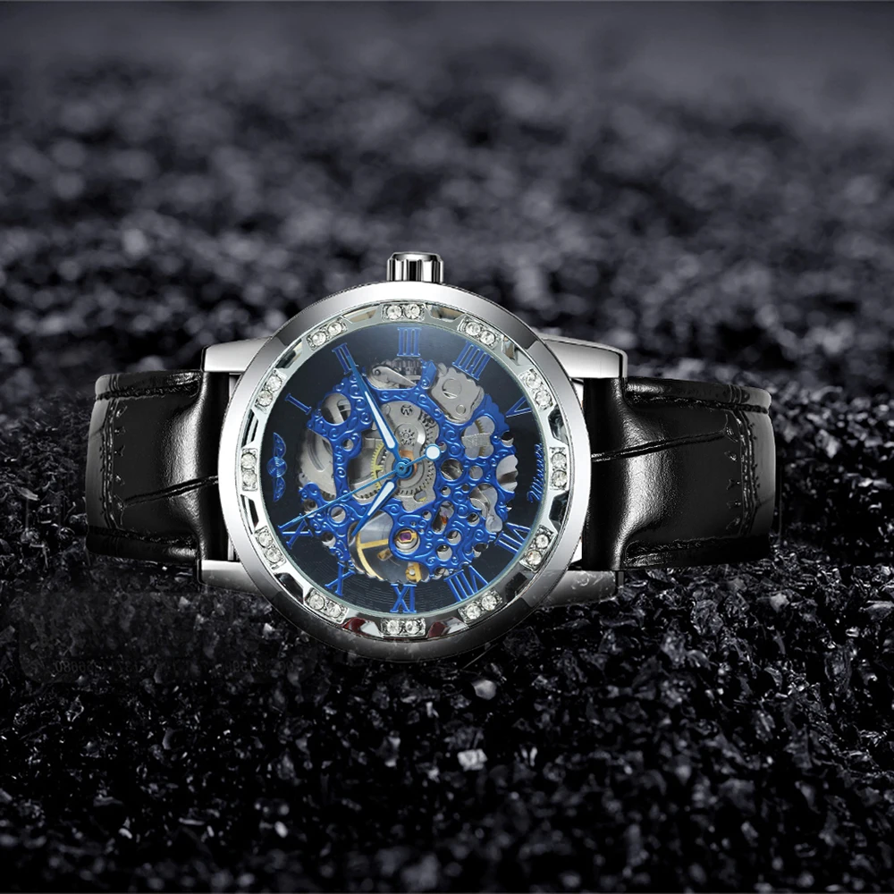 Часы-скелетоны WINNER Мужские механические, брендовые Роскошные наручные, со стразами, с кожаным ремешком, унисекс
