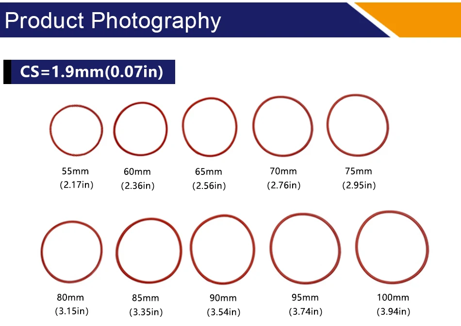 Уплотнительное кольцо VMQ, красное Силиконовое кольцо, диаметр 1,9 мм, наружный диаметр 556065707580859095100*1,9 мм, резиновое уплотнительное кольцо прокладки, шайбы