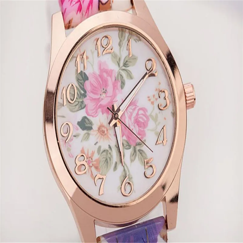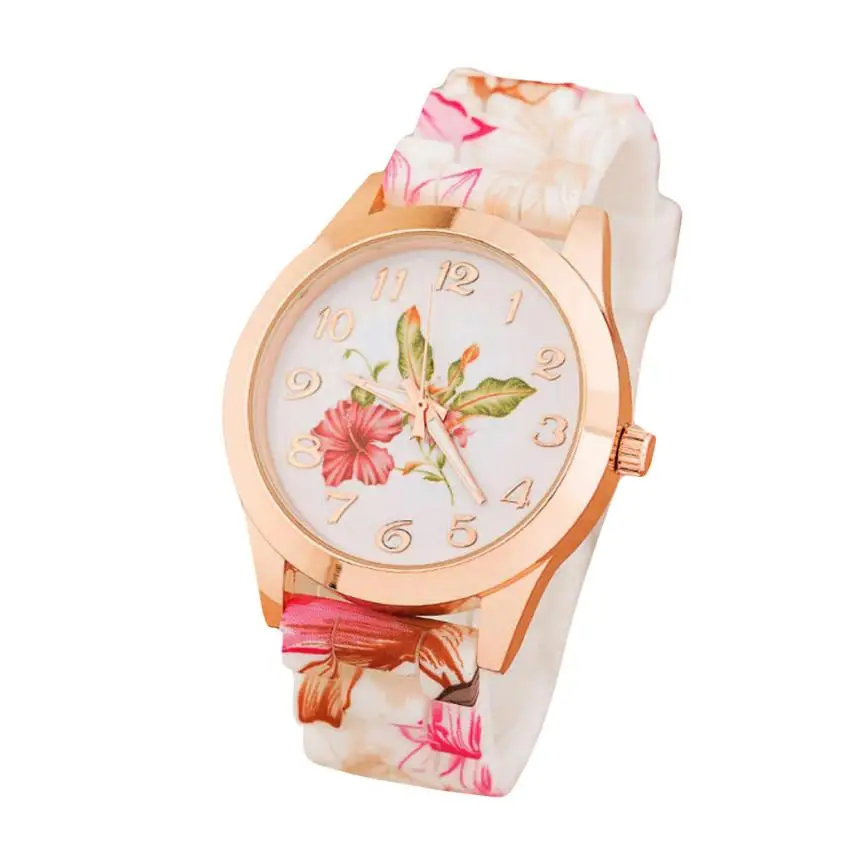 1 шт. женские часы для девочек силиконовый с цветочным рисунком повседневные кварцевые наручные часы(Без розничной упаковки)
