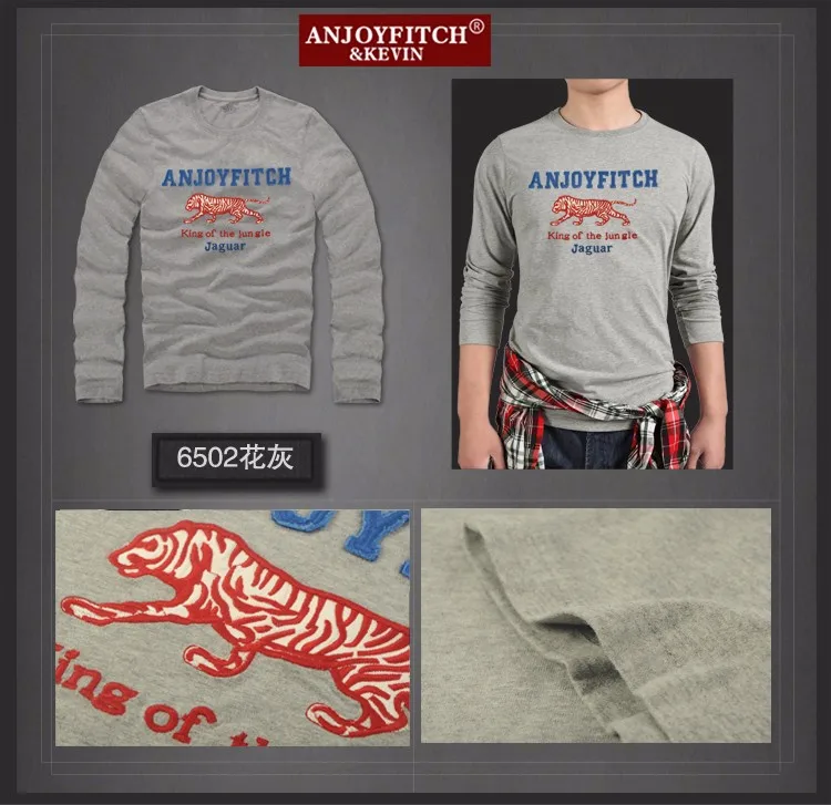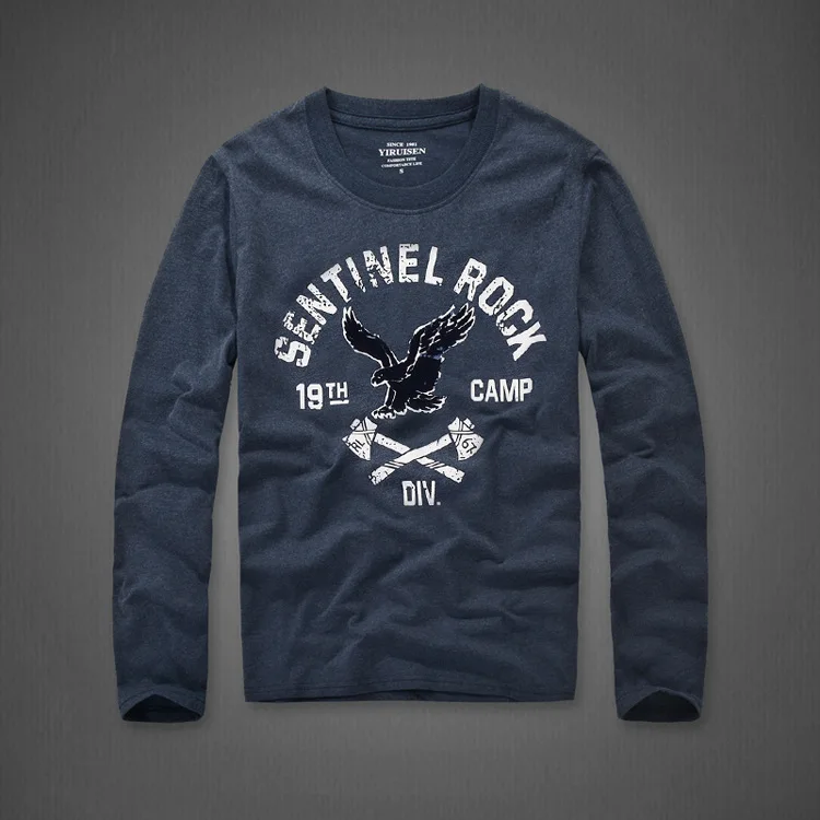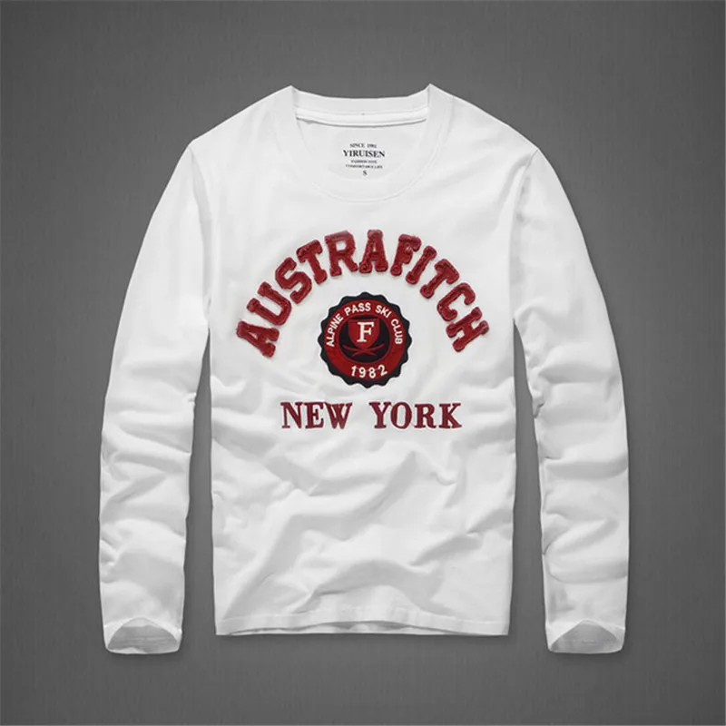 Мужская футболка с длинным рукавом, круглым вырезом и вышивкой