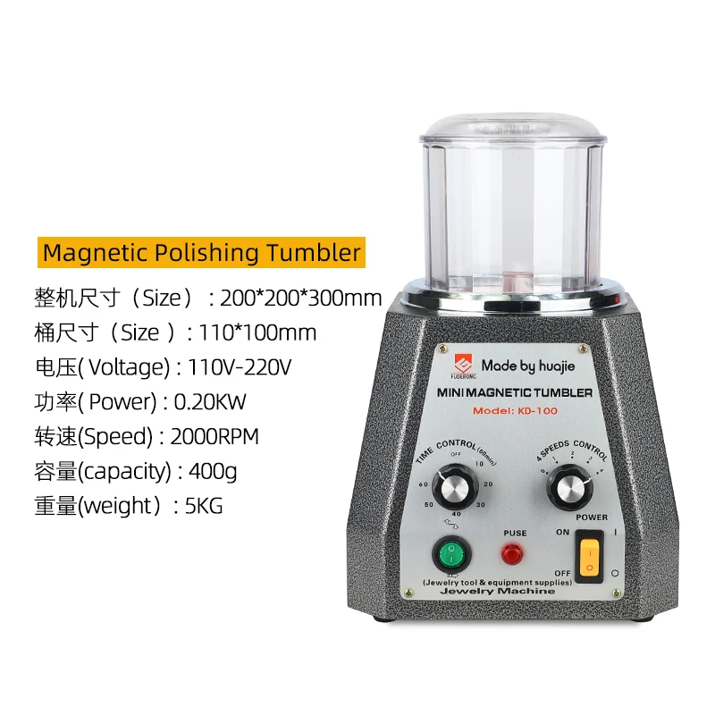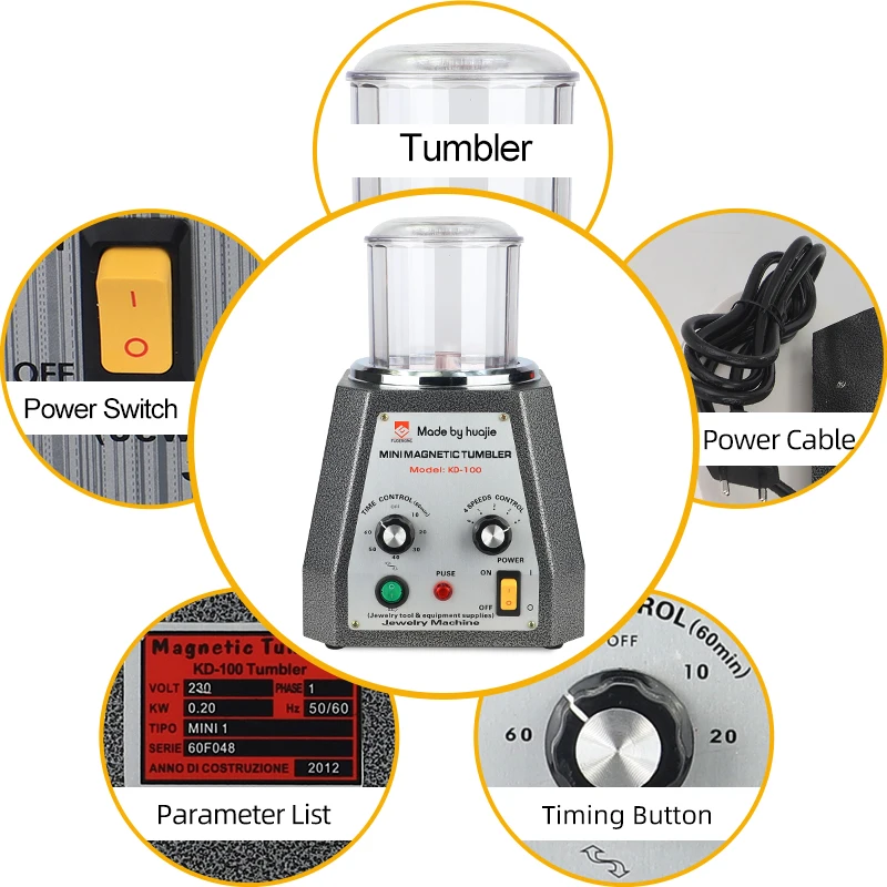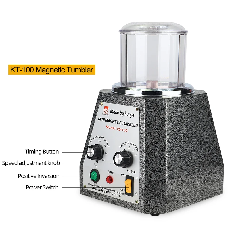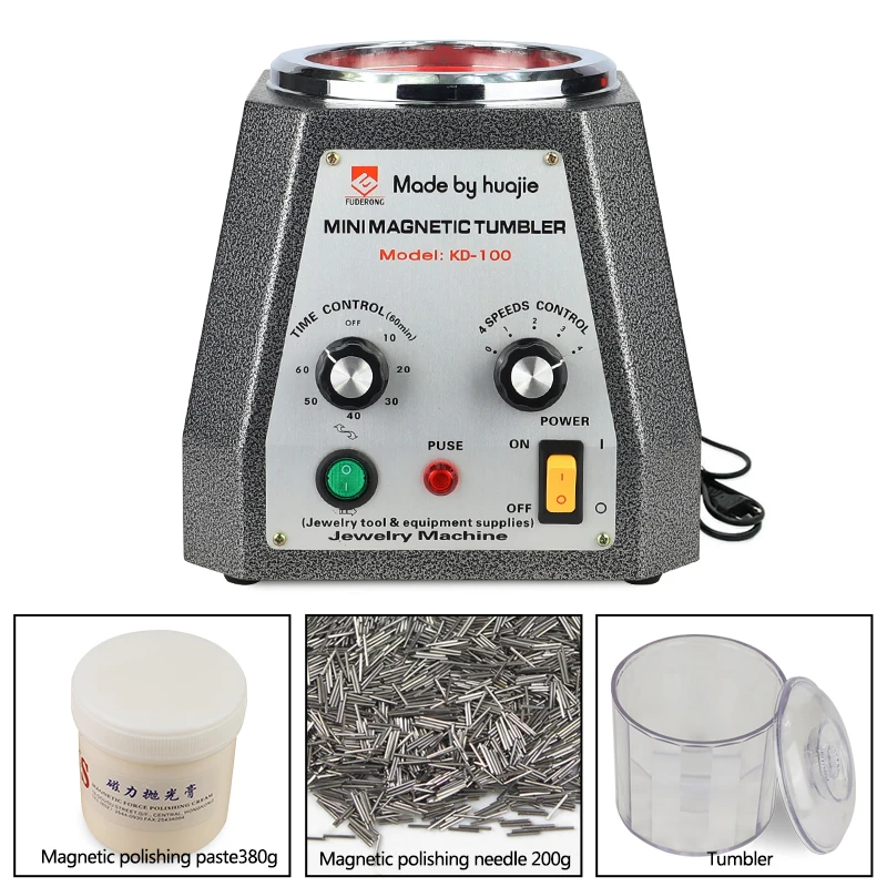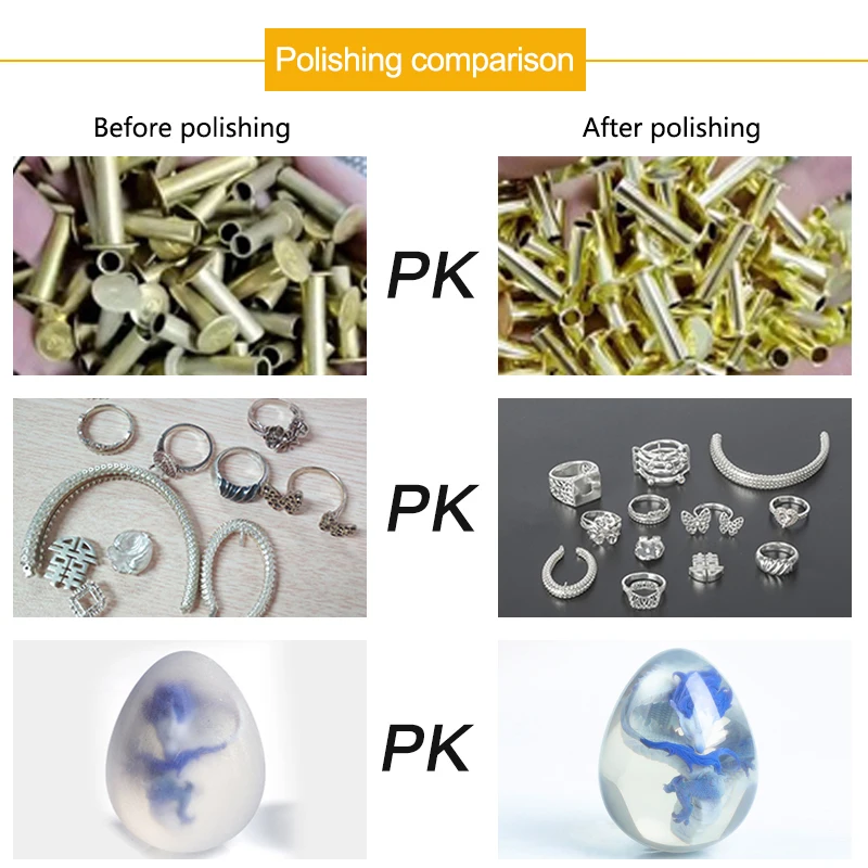 Весь точный процесс полировки завершен за 30 минут, просто положите ваши ювелирные изделия, стальную булавку, воду и специальные полировальные соединения в чашу, а затем нажмите «on».
