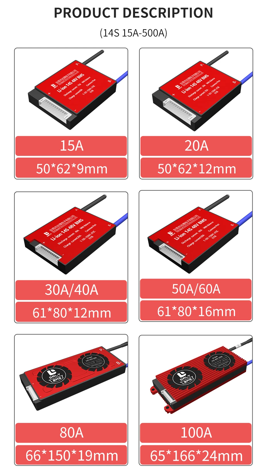 Плата защиты батареи, 3,7 в, литий-ионная, 14S, 48 В, 20A, 30A, 40A, 60A, 18650 A, PCM, BMS PCM с модулем сбалансированной литиевой батареи