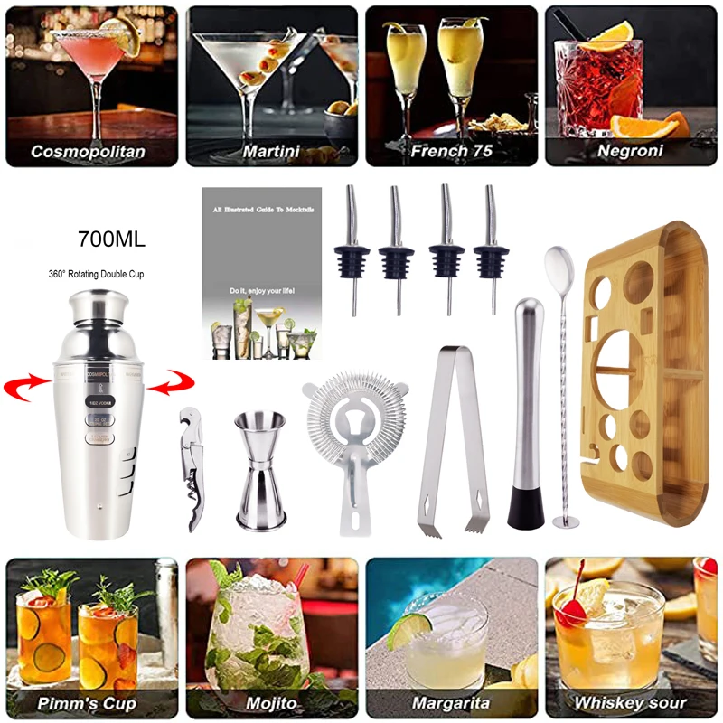 Набор включает в себя 1-12 шт., необходимых для смешивания напитков, таких как шейкер, ложка для смешивания, джиггер, щипцы, напитки, нож и так далее