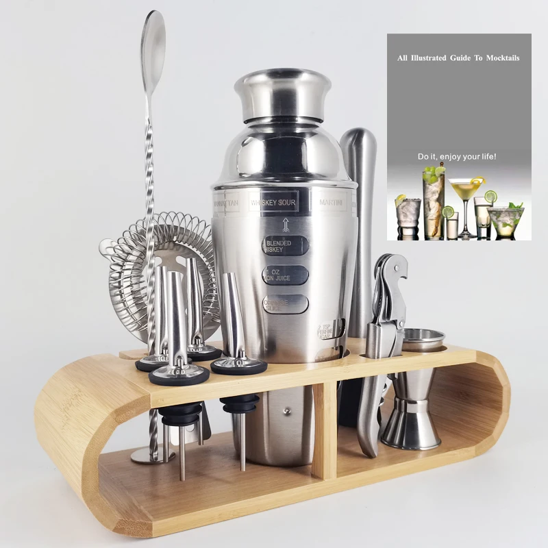 Барный набор бармена с бамбуковой подставкой, миксер для приготовле...