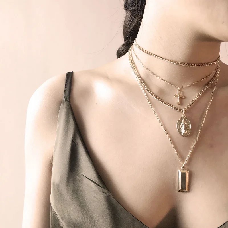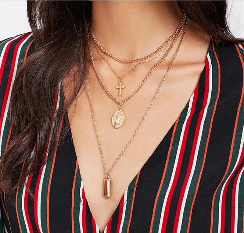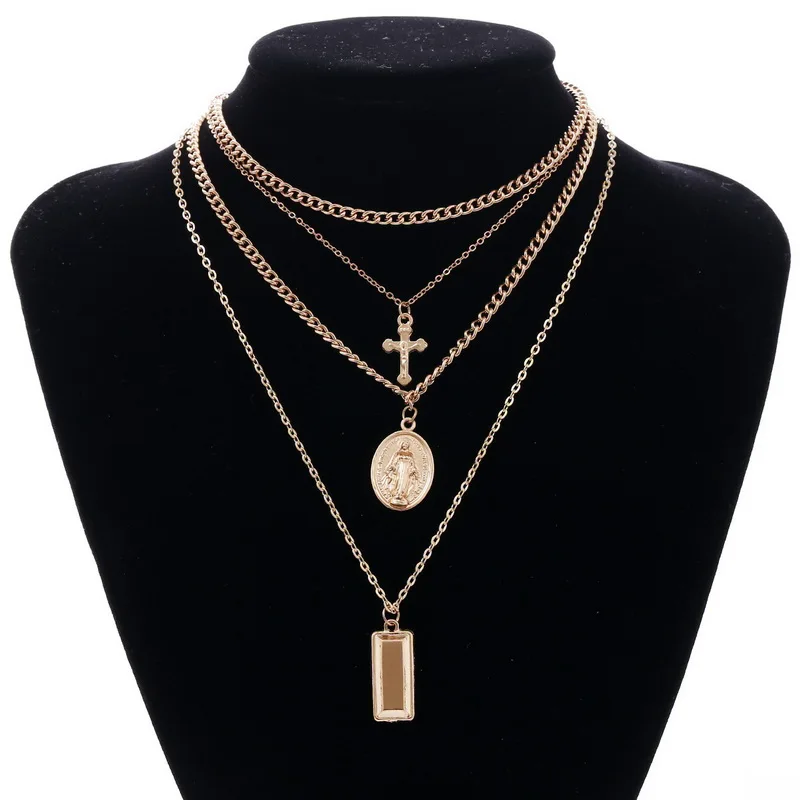 F.J4Z Богородица массивное длинное ожерелье на цепочке для костюма горячее стильное многослойное ожерелье с подвеской в виде креста богини