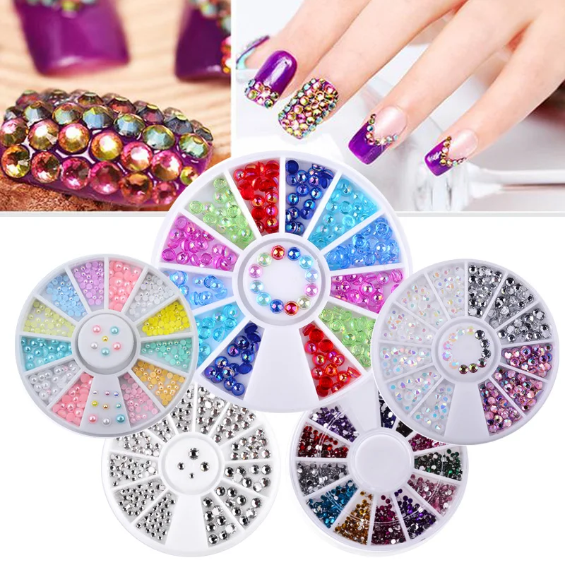 1 коробка, смешанные размеры, 3D Стразы AB, хрустальные блестящие бусины, жемчужные колеса, украшения для ногтей, аксессуары для маникюра DIY