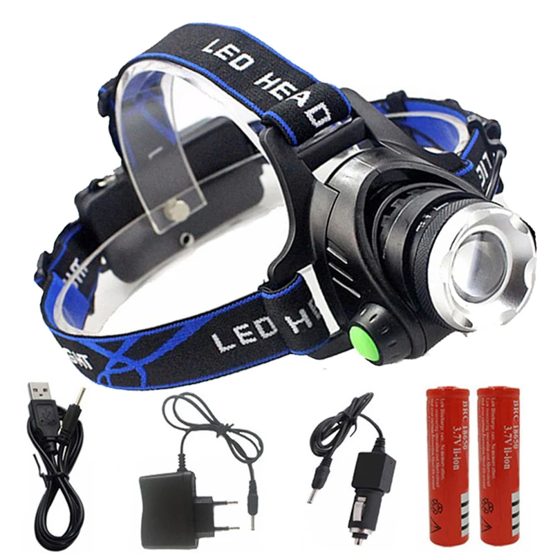 Налобный фонарь T6, светодиодный фонарь с зумом настраиваемый налоб...