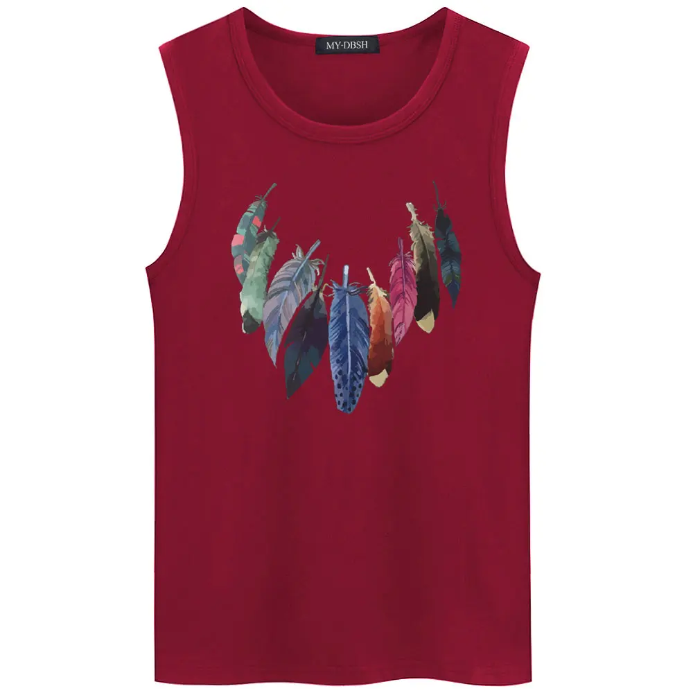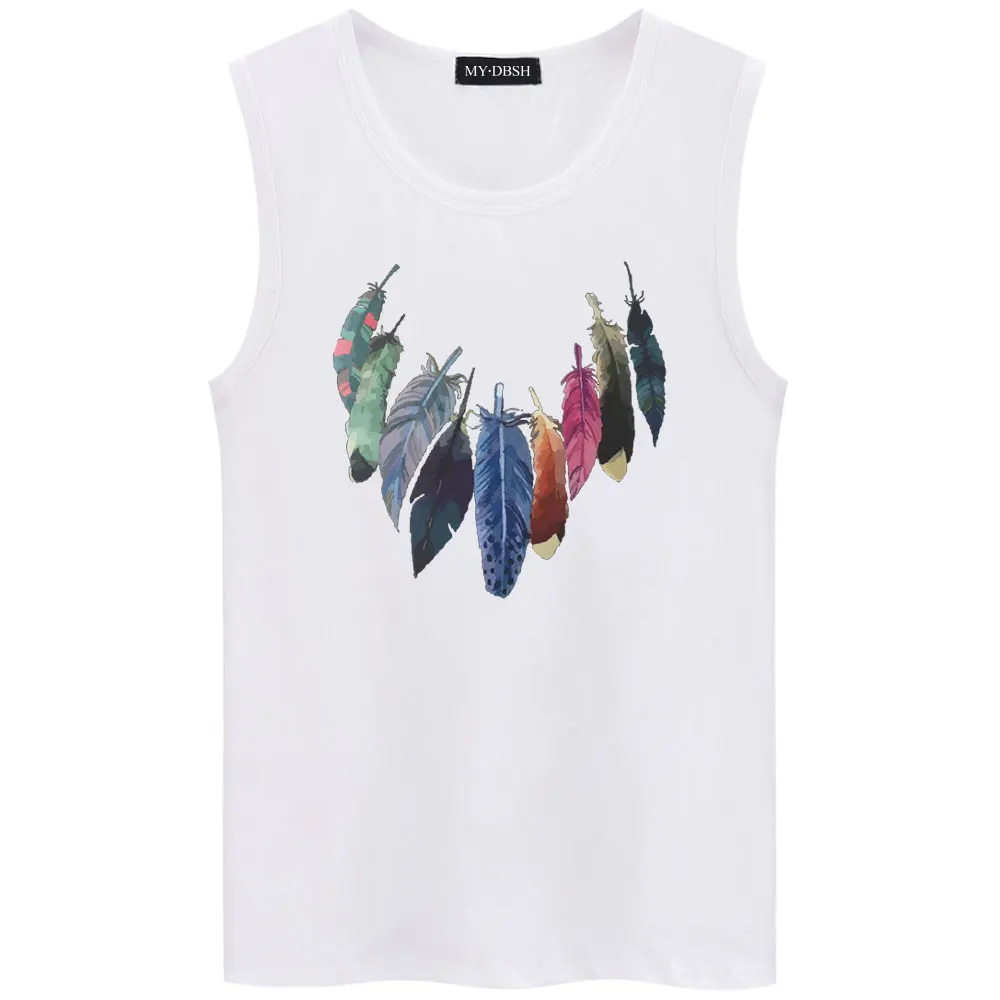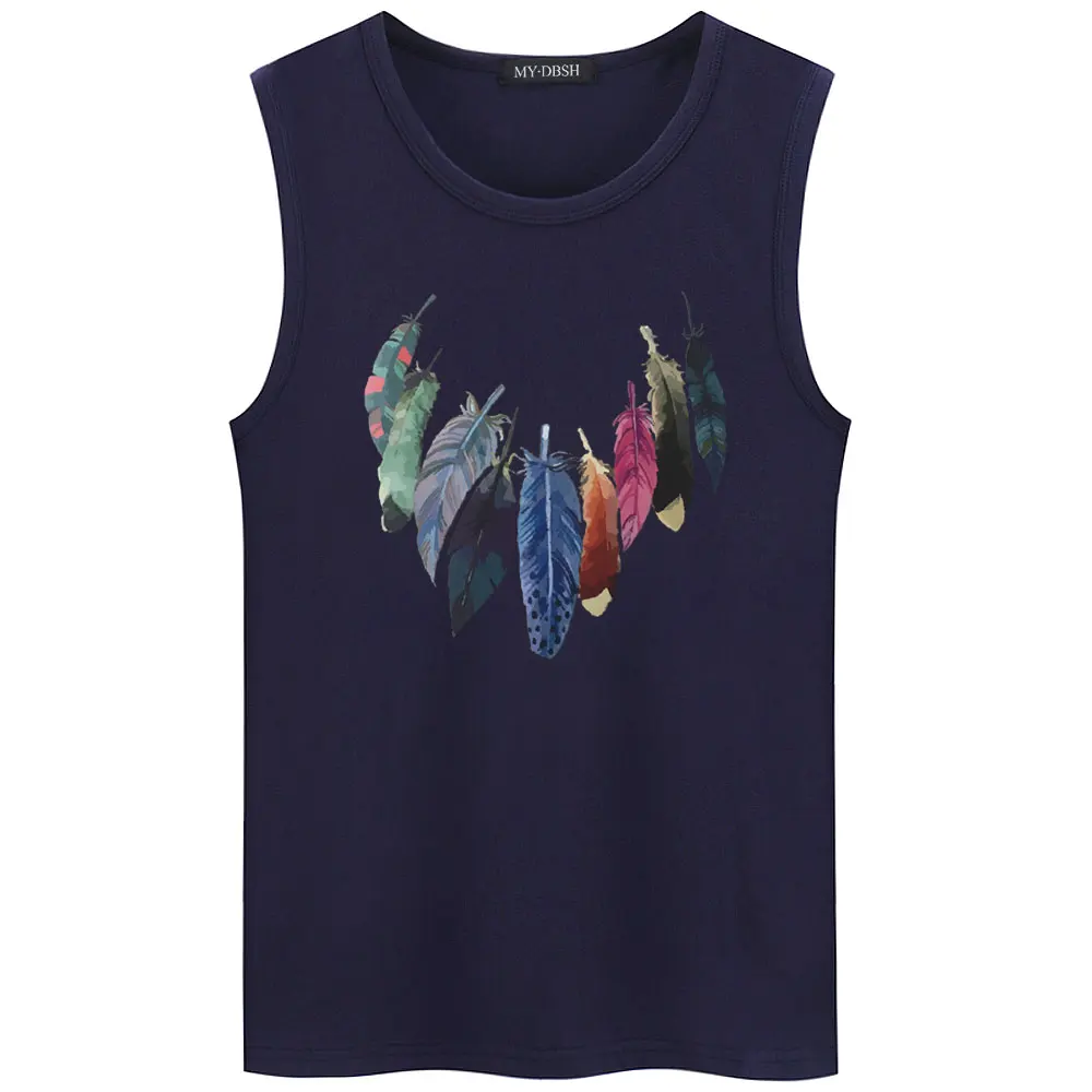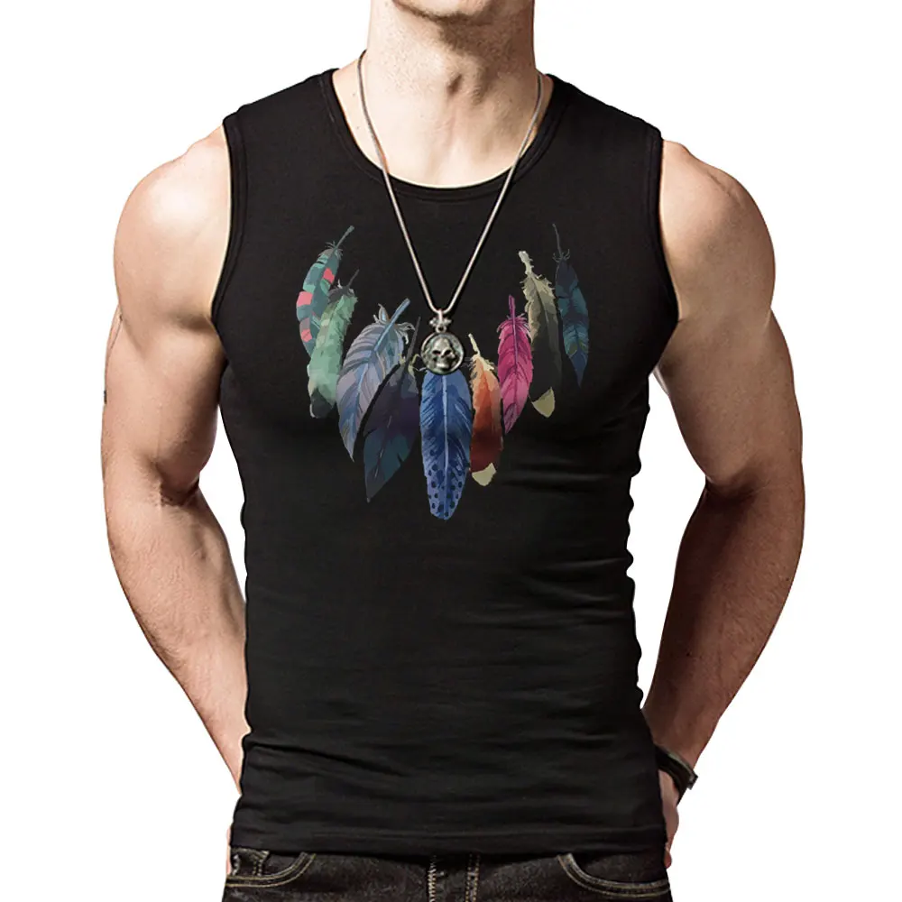 Майка мужская с принтом перьев, модный жилет из хлопка, майка для бодибилдинга, летняя рубашка