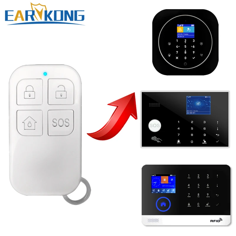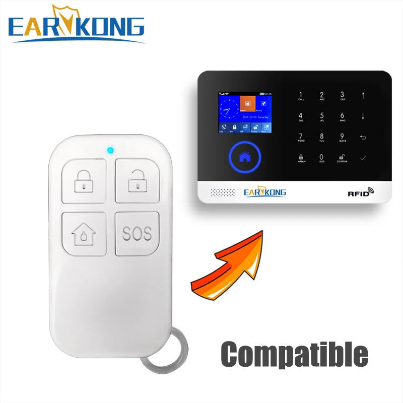 Этот пульт дистанционного управления совместим с Wi-Fi gsm ниже Домашняя защита от взлома Система сигнализации, вы можете нажать ниже фото и купить Wi-Fi gsm домашний грабитель Система сигнализации.