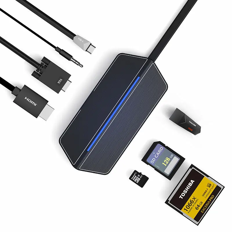 Интерфейс преобразования: HDMI, VGA, RJ45, кардридер TF /SD, PD зарядка, USB3.1, аудио