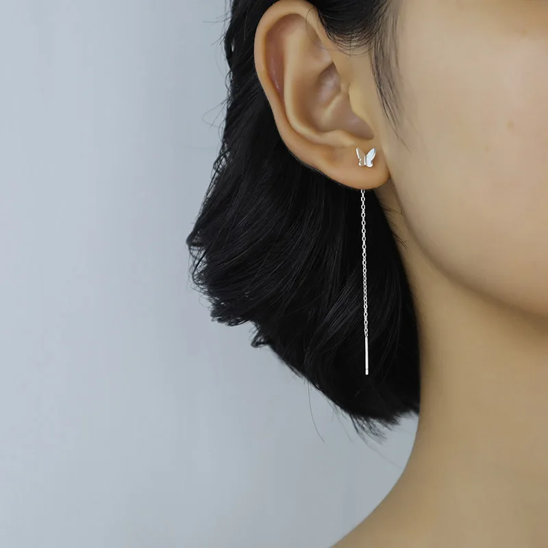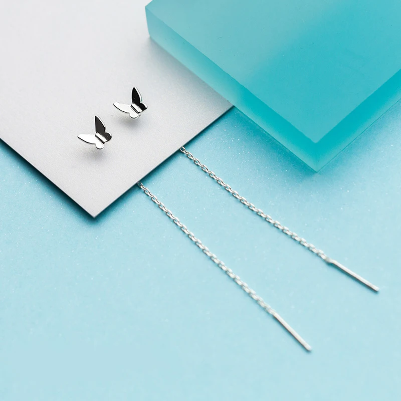 TrustDavis модные горячие 100% Стерлинговое Серебро 925 пробы Серьги-гвоздики с маленькой бабочкой 6,8 см Висячие палочки для девочек подарок для друзей DS609