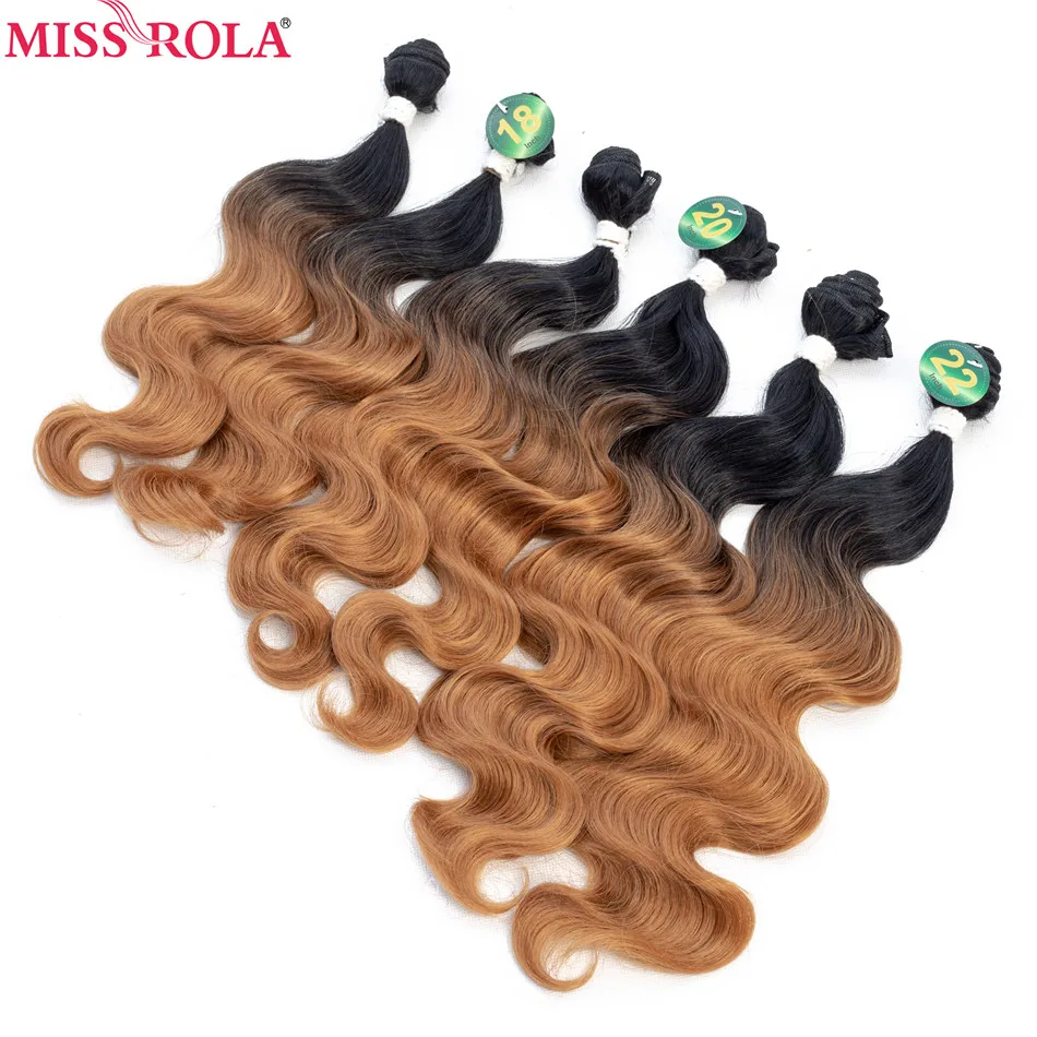 Miss Rola Ombre пряди волос, синтетические волосы для наращивания, волнистые пряди для наращивания, 6 шт., 18-22 дюйма, пряди волос с бесплатным закрытием