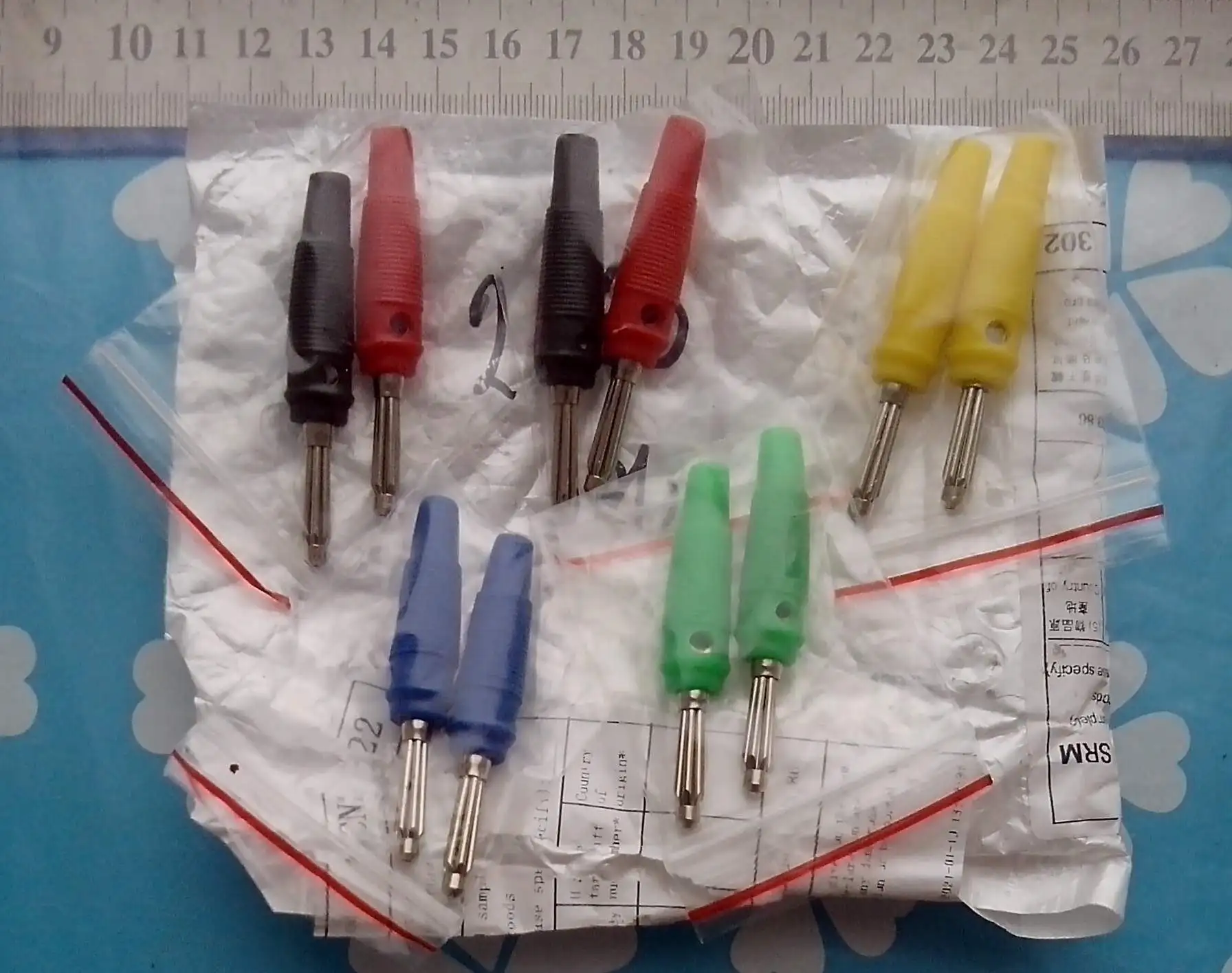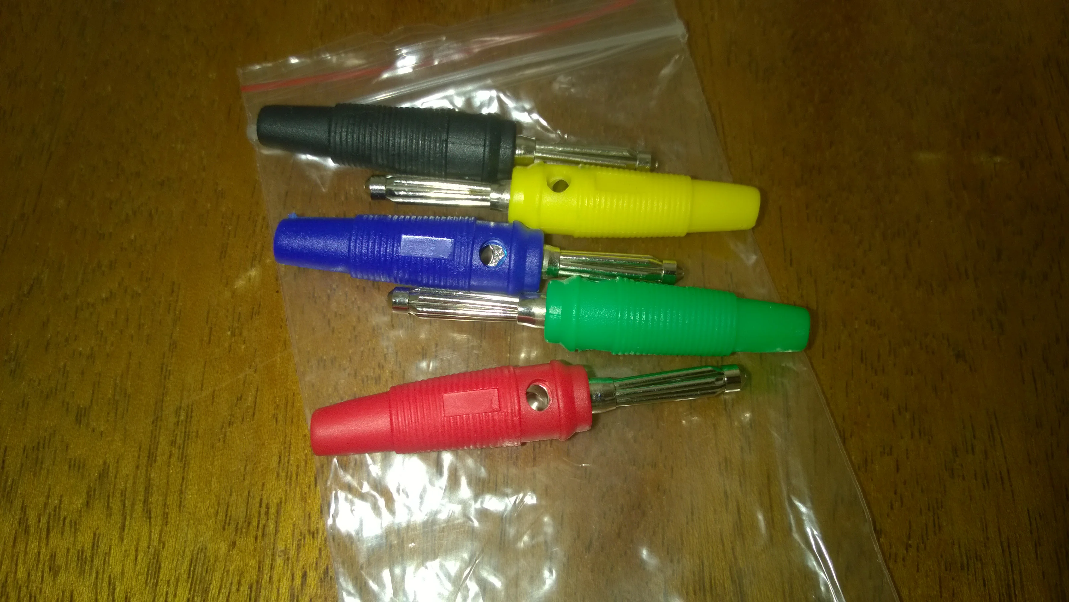 Хорошие бананы,отлично держатся в гнездах не гуляют.Колпачек не дает проводу переломиться.На много лучше дешовых.Дошли в принцапе быстро.