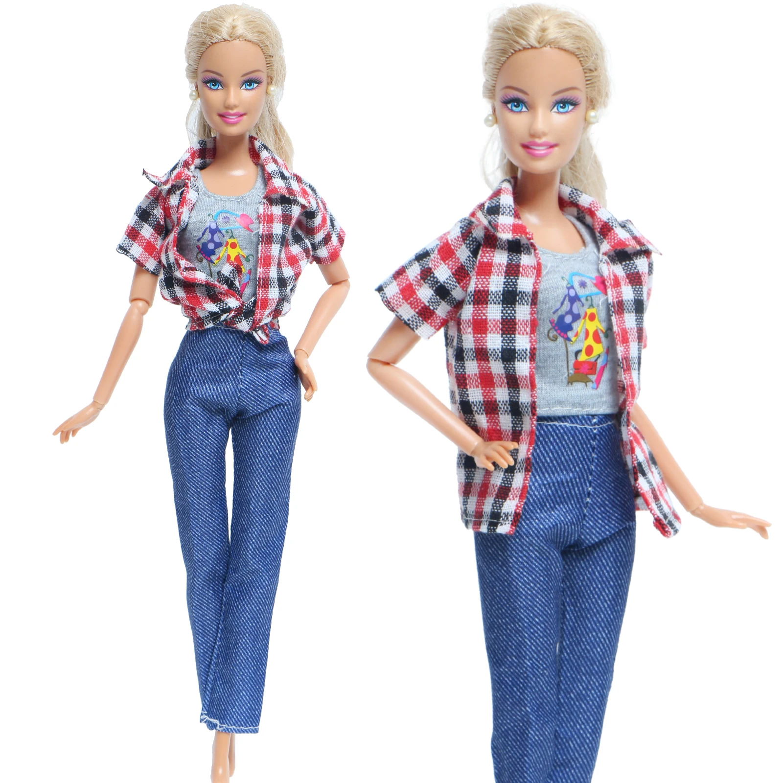 Комплект одежды для кукол, рубашка и брюки, в клетку