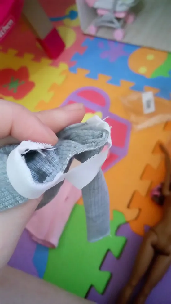 el jersey ha llegado con una manga rota. y el pantalón es demasiado pequeño para una barbie.