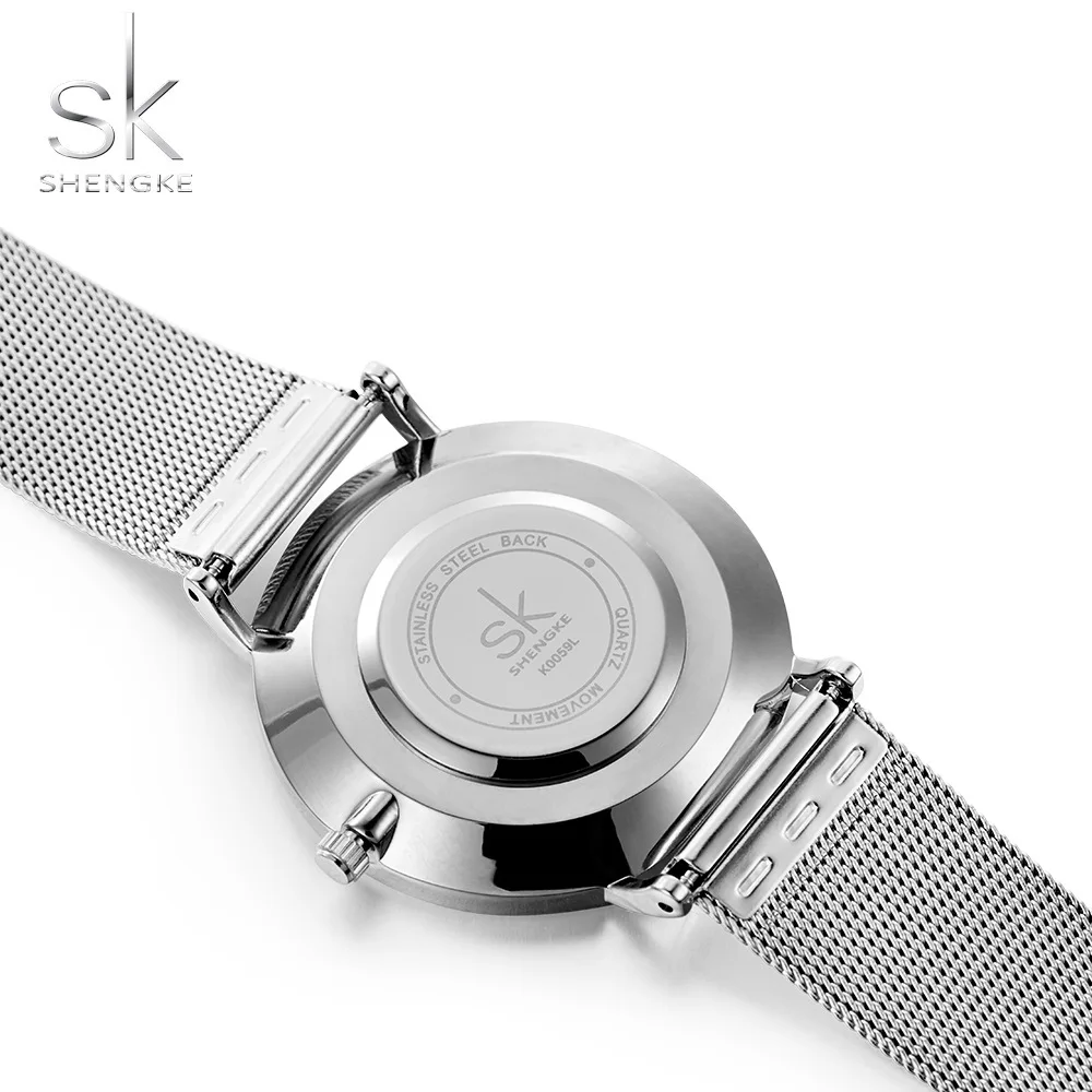 Часы наручные SHENGKE женские ультра тонкие, роскошные Серебристые модные