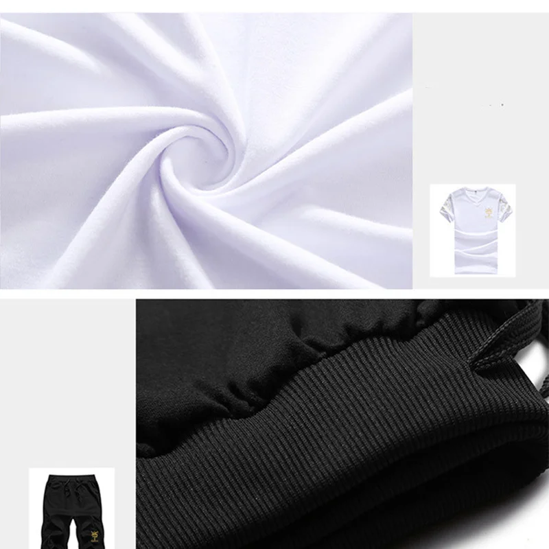 Мужские украшенные вышивкой комплекты летние мужские спортивные кос...