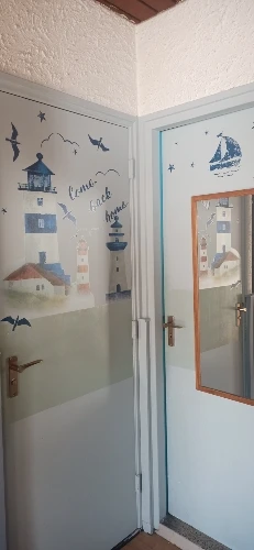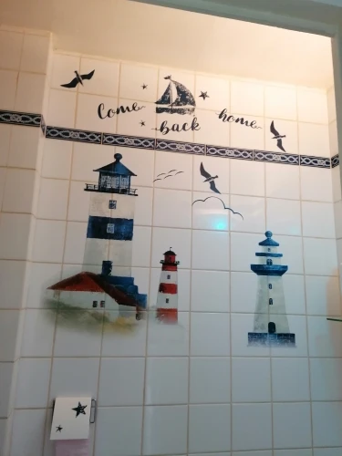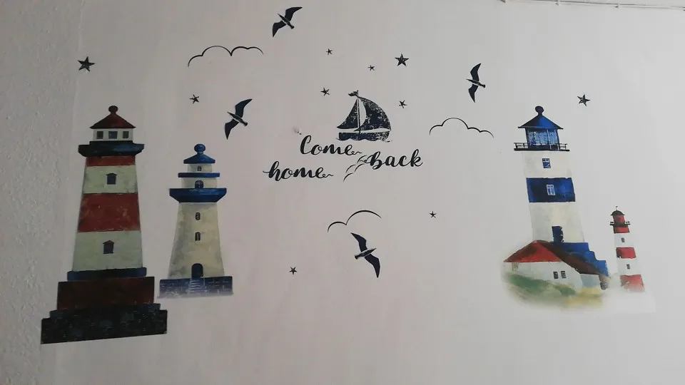 Очень красивые наклейки. Поддерживает интерьер в морском стиле. Держатся крепко. Очень хорошо были упакованы в виде тубуса. С продавцом не общалась. Доставка быстрая.