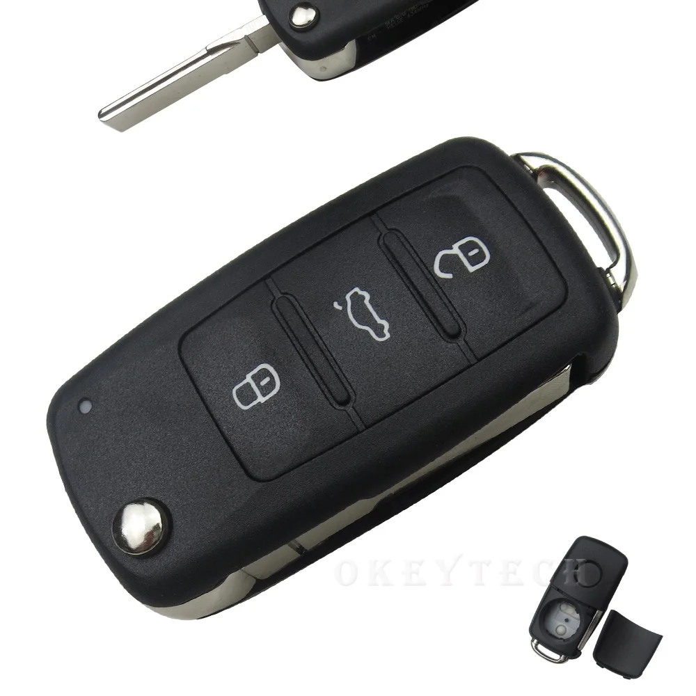 OkeyTech складной Сменный Чехол с тремя кнопками и необработанным лезвием для Volkswagen VW Tiguan Golf Sagitar Polo