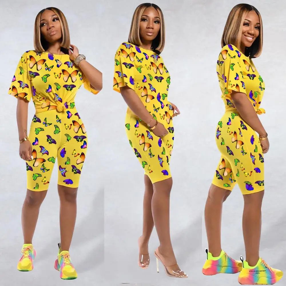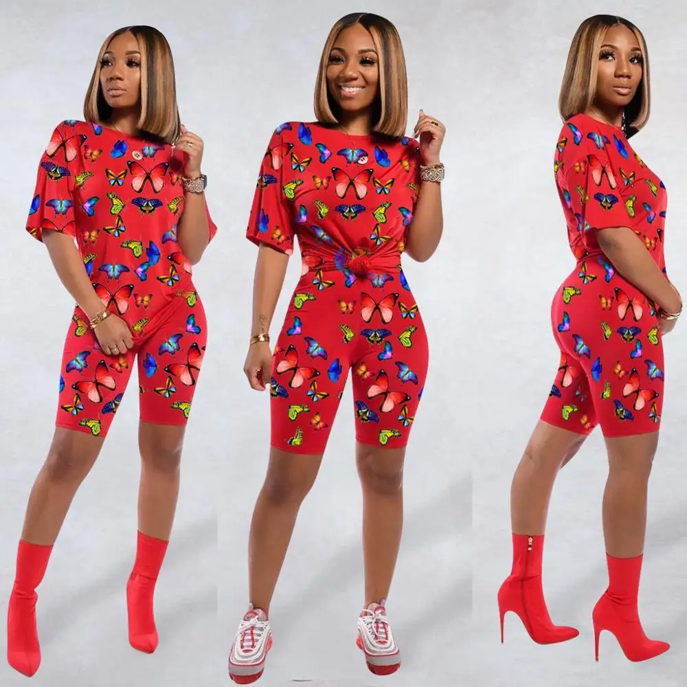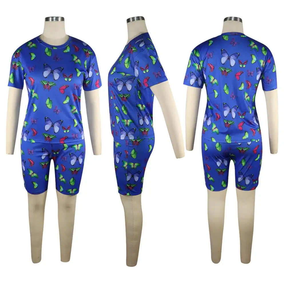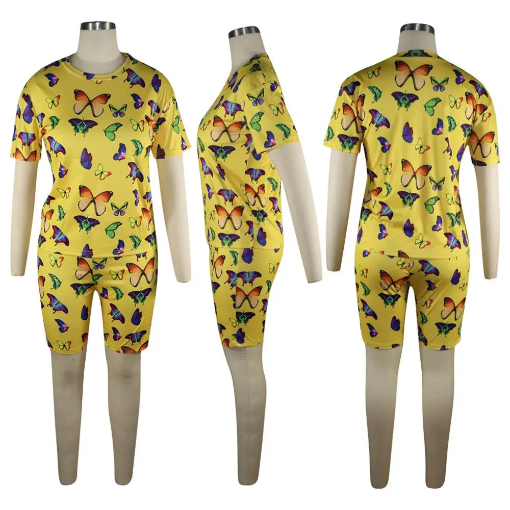 Женский спортивный костюм, комплект из двух предметов, футболка с принтом бабочек, спортивные костюмы, летние наряды, размера плюс