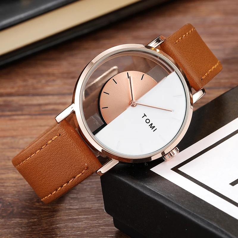 Уникальные мужские часы, пара наручных часов, половина прозрачного стекла, нержавеющая сталь, кожаный ремешок, наручные часы, спортивные relogio masculino
