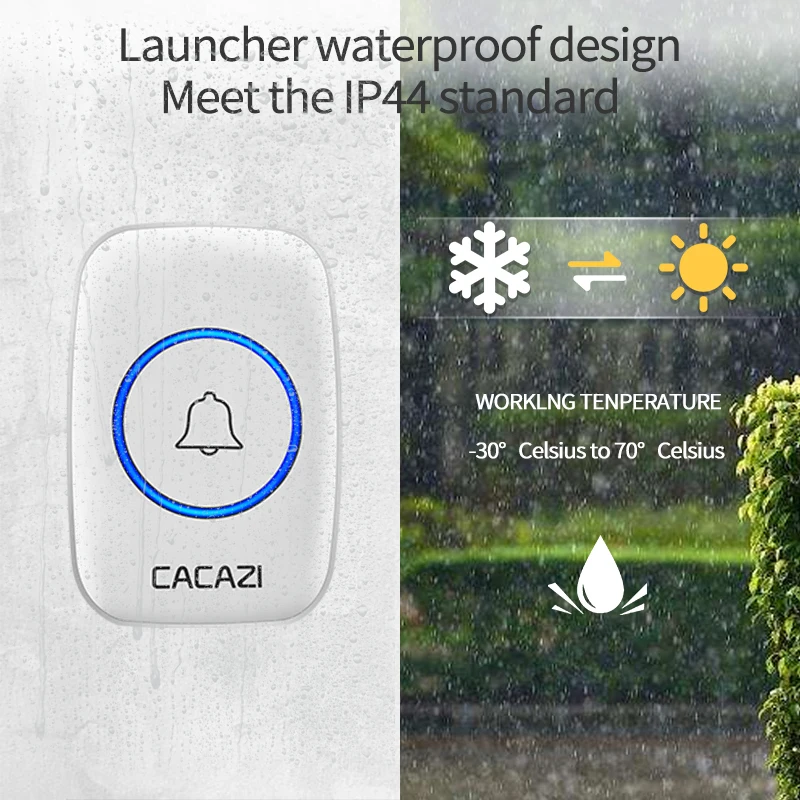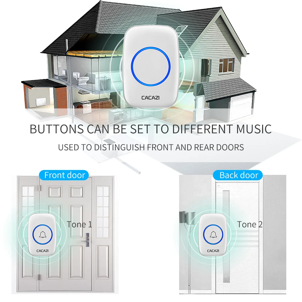 Беспроводной дверной звонок CACAZI, водонепроницаемый, с дистанционным управлением, работает на расстоянии 300 м, кольцо для домашних звонков, со штепсельной вилкой США, ЕС, Великобритании, беспроводной звонок
