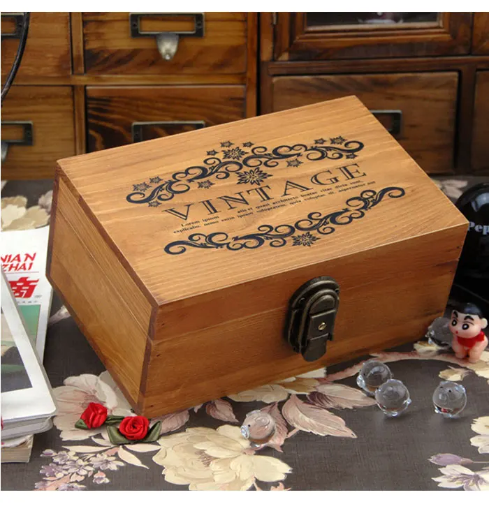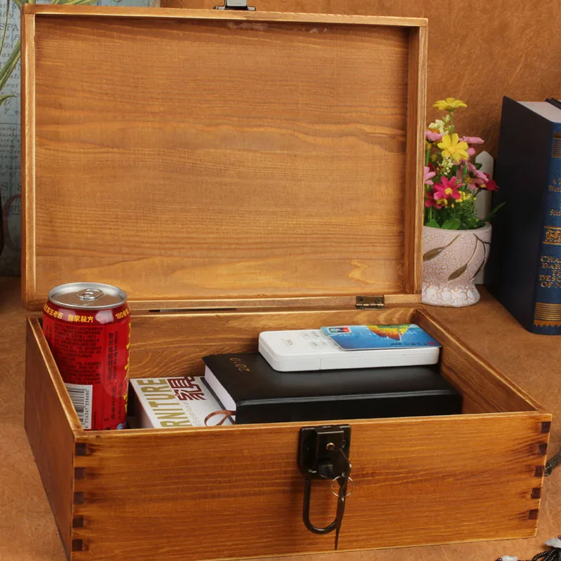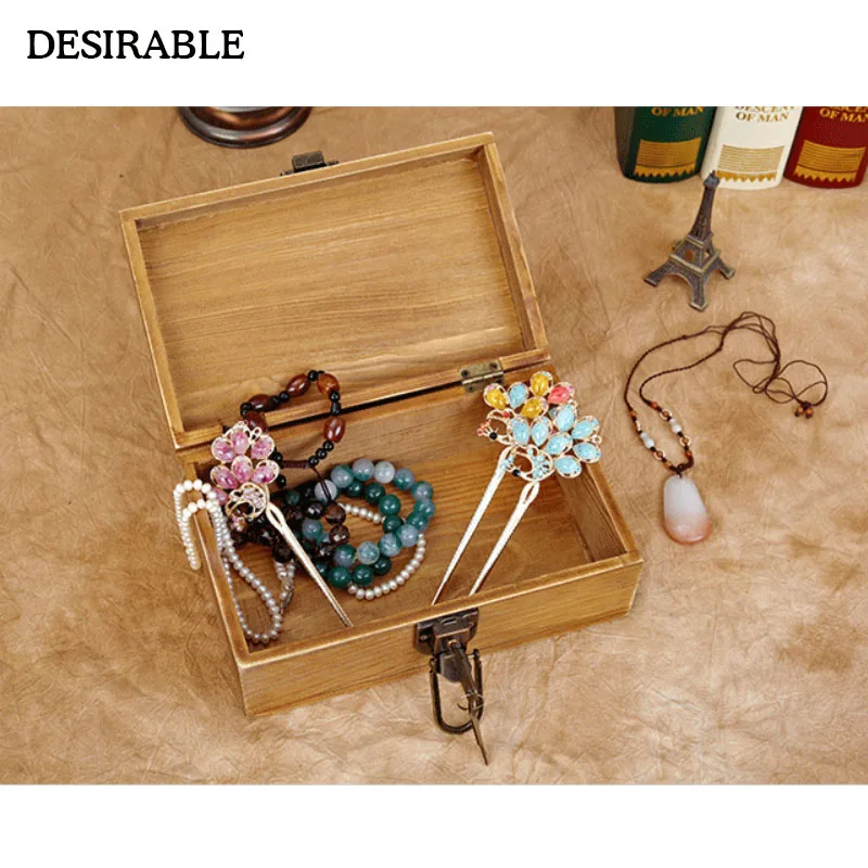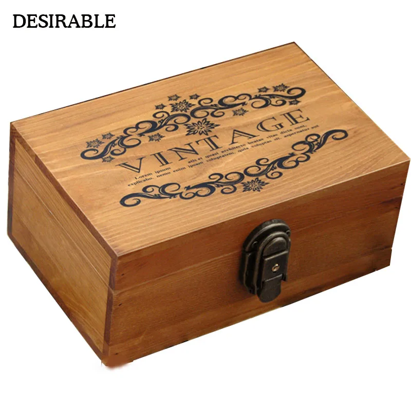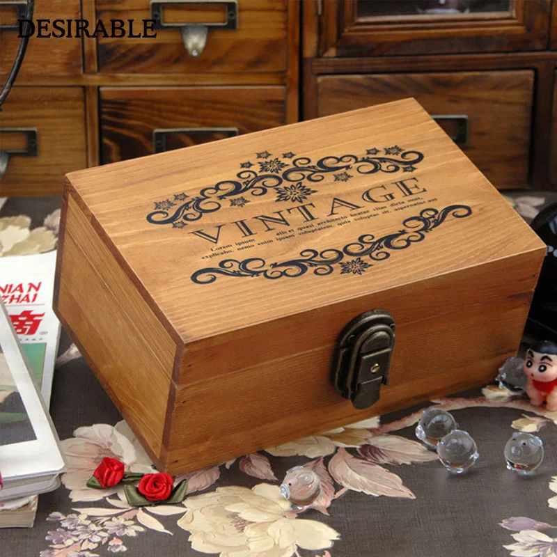 Желанная Ретро деревянная коробка с замком натуральная сосна два размера твердая древесина Ювелирная открытка Подарочный Органайзер ручной работы ремесленный чехол деревянная коробка 1 шт