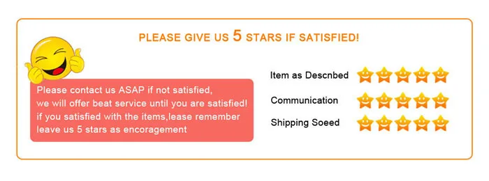 1. Наша цель-убедиться, что вы счастливый клиент и приятная покупка с нами.2. Если вы удовлетворены покупкой и нашим общим обслуживанием, ваш комментарий очень важен для успеха нашего бизнеса. Пожалуйста, уделите минуту, чтобы оставить нам положительные отзывы с общим детальным рейтингом продаж 5.3. Если вы не удовлетворены своей покупкой каким-либо образом, пожалуйста, дайте нам возможность решить любую проблему. Мы понимаем проблемы и разочарования, которые могут возникнуть у вас, и постараемся сделать все возможное, чтобы решить проблемы.