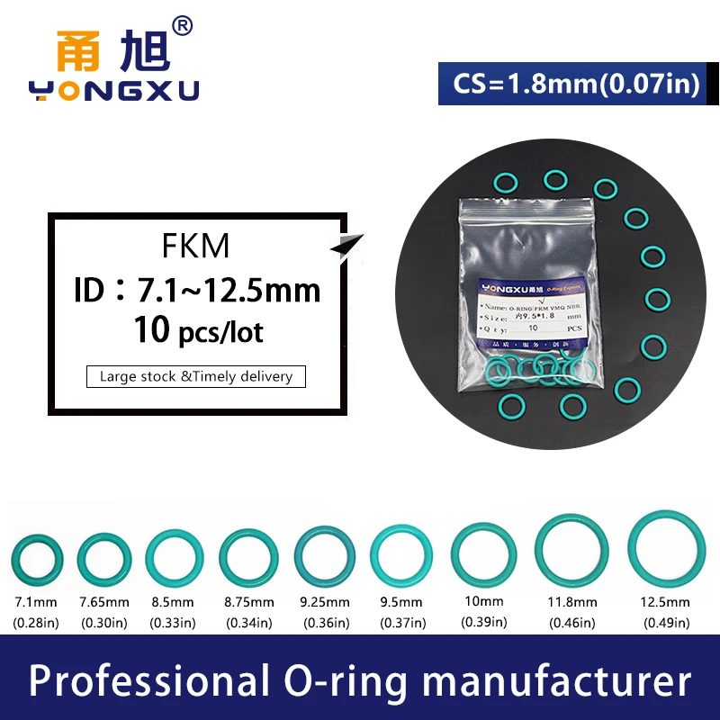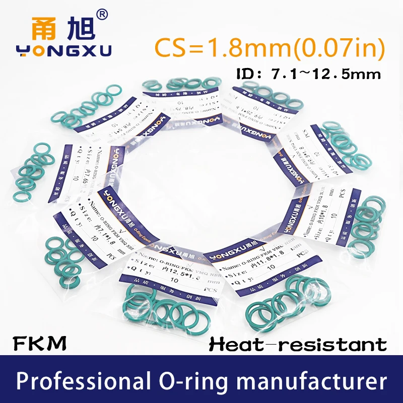 10 шт.лот фторкаучук FKM уплотнительное кольцо CS1.8mm ID7.17,57,6588.58.7599.259.51010.611.211.812.5*1,8 мм уплотнительная прокладка