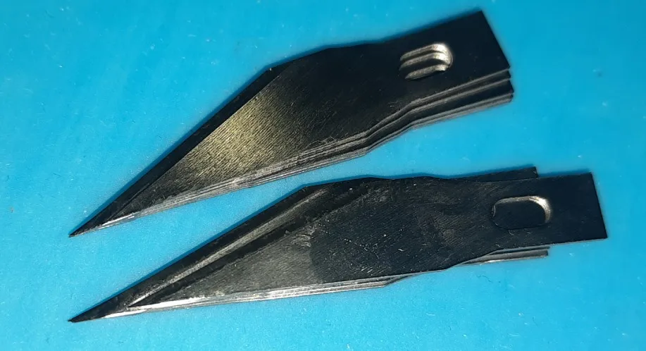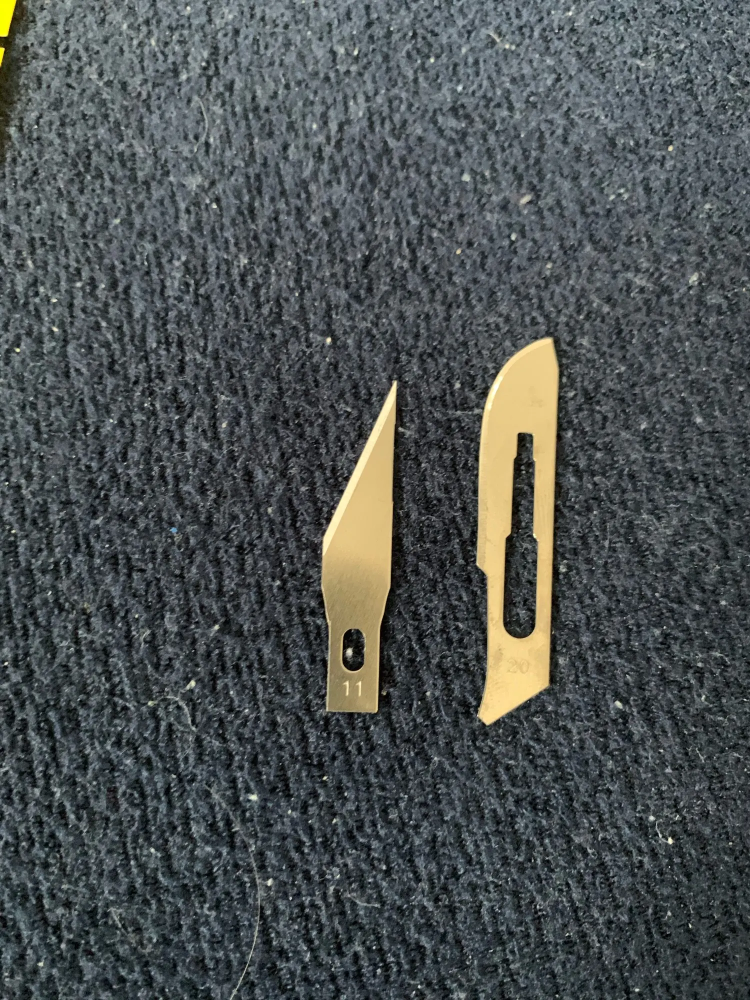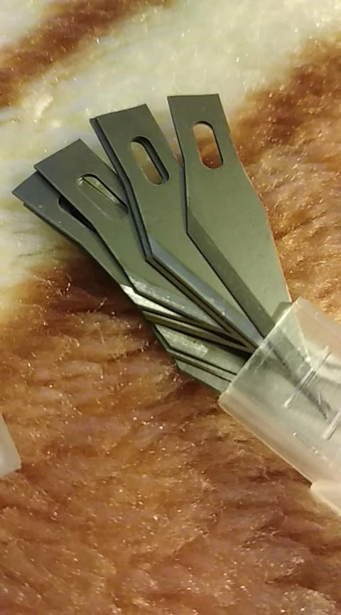 #11 - классические лезвия, к которым мы привыкли. Шли долго, но дошли, по упаковке видно, что вскрывали на таможне. Беру для вытынанок. Сами лезвия по 10 штук в кейсе, пришло 2 кейса. Лезвия в смазке, чистые, без ржавчины. Заточный край не везде одинаковый, но на остроту это не влияет. Брала за 113 руб 20шт. Кому срок не критичен - рекомендую!