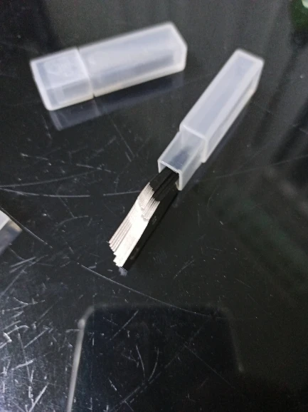 Самый первый заказ, который прибыл за 10 дней после 11.11. Хорошие лезвия. Беру помногу, поскольку очень тонкий кончик часто ломается.