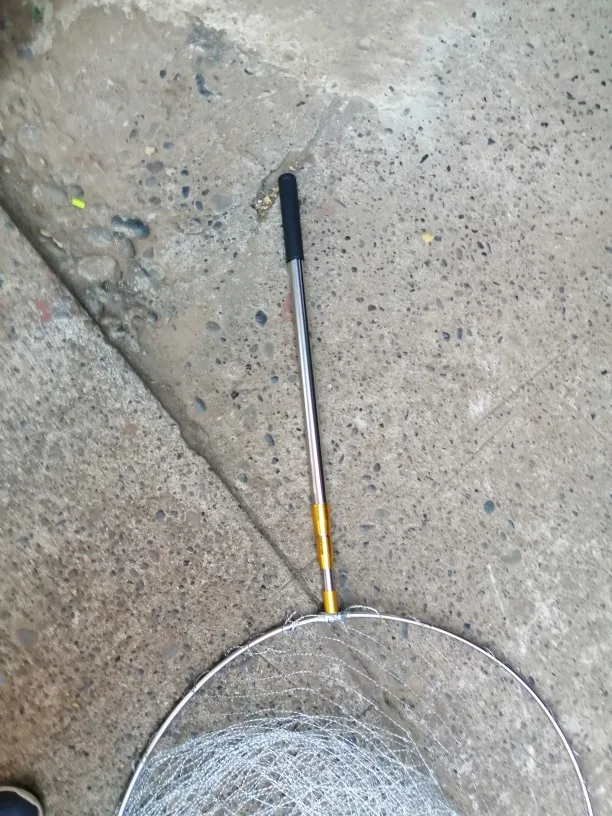Довольно прочная телескопическая палка с резьбой М8 на конце. Можно ввинтить трезубец, можно сачек.