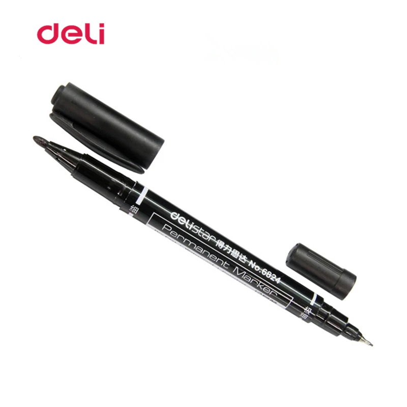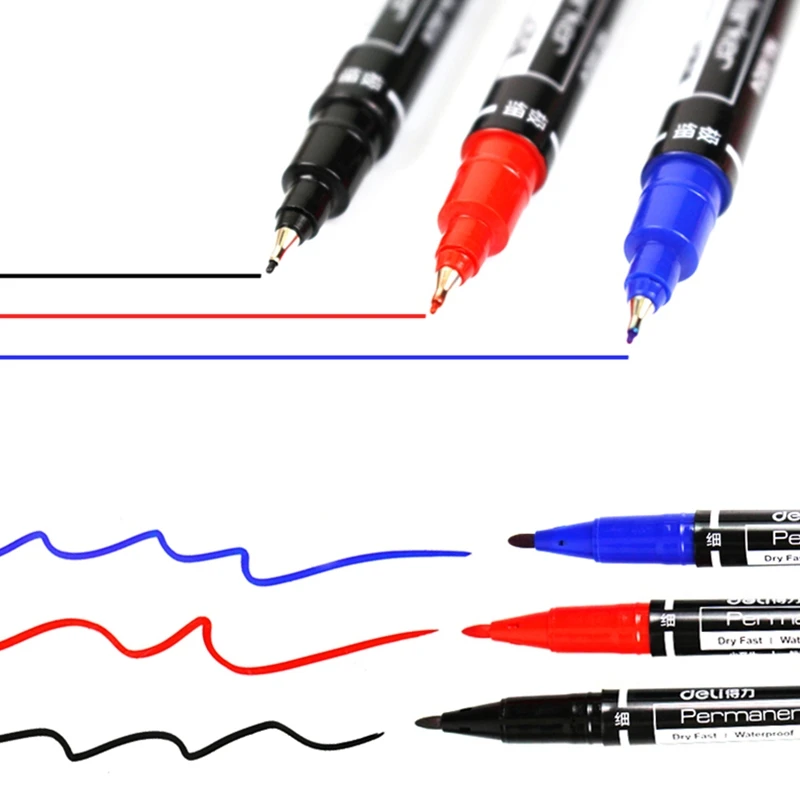 3 шт. Deli 0,51 мм двойной наконечник цветная маркировочная ручка постоянная Водонепроницаемая краска для CD ткани Металл камень дерево Офисные инструменты для рисования