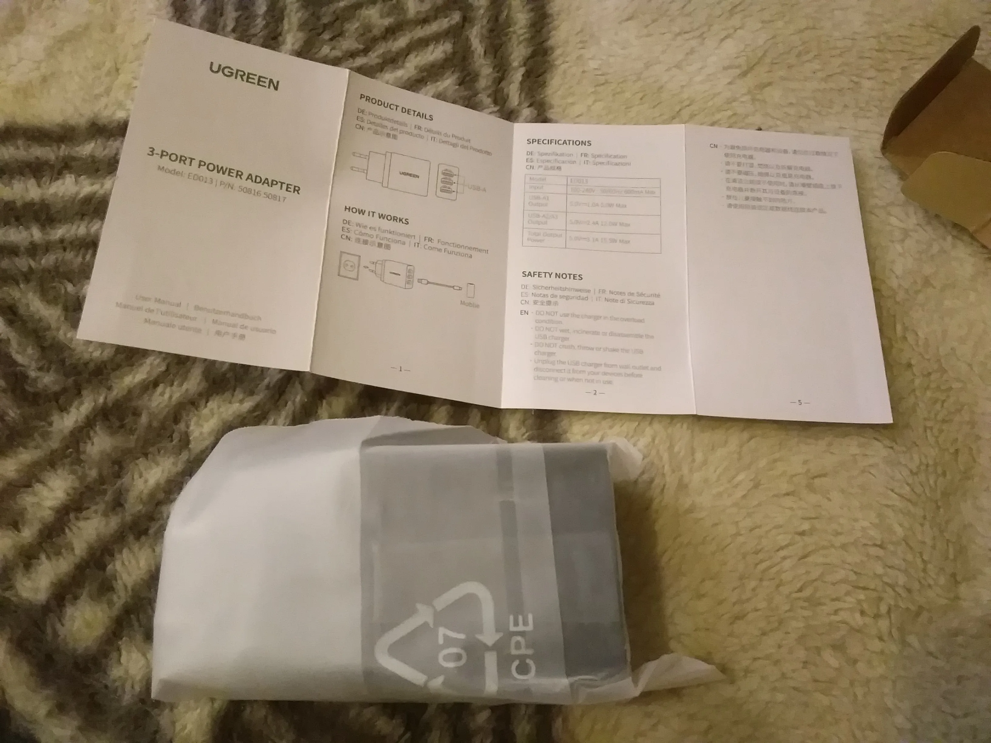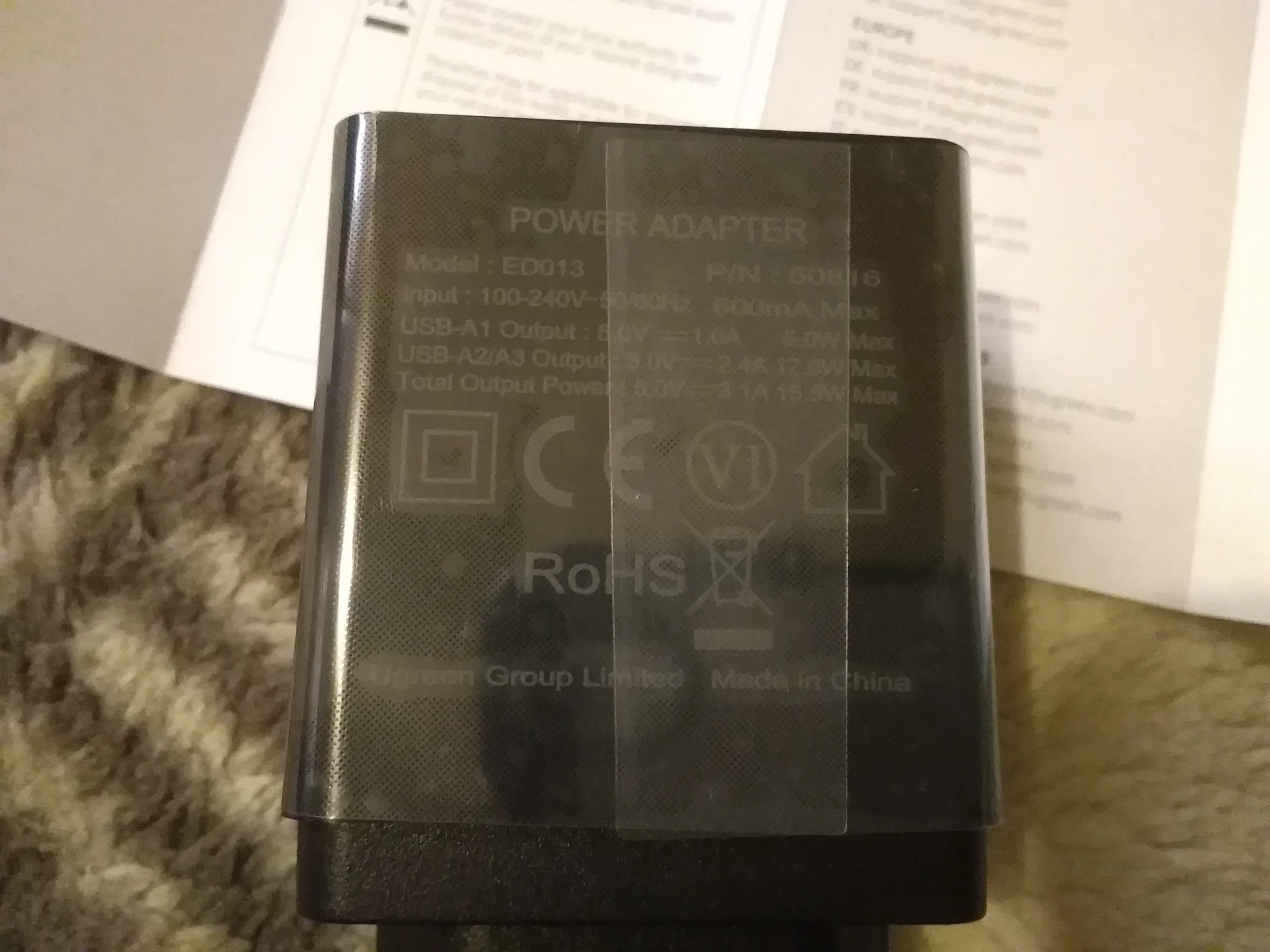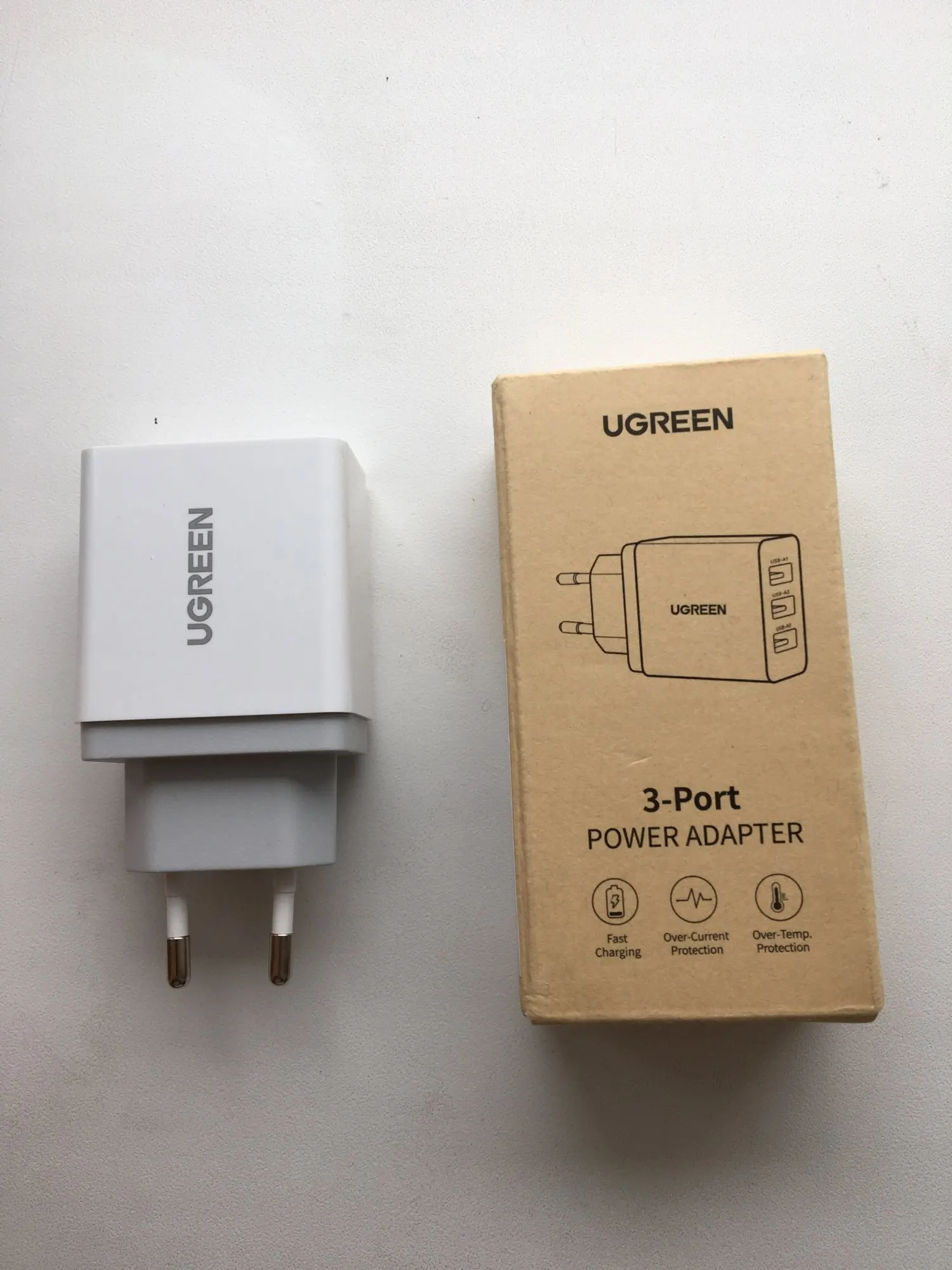 Зарядный адаптер Ugreen добрался до Санкт-Петербурга за 11 дней. Качество у Югрина как всегда на высоте. Заказываю разные аксесуары для гаджетов только этой фирмы и ни разу не прогадал. Все три дырки работают и очень даже не плохо. Одновременно подключал два весомых планшета и смартфон с функцией быстрой зарядки и напряжение на выходе просело незначительно (судя по моему USB тестеру), нагрелся не особо сильно (руку не обжигает). Со своей задачей справляется на ура. Заказом я очень доволен. Товар рекомендую, продавца тоже. Спасибо!