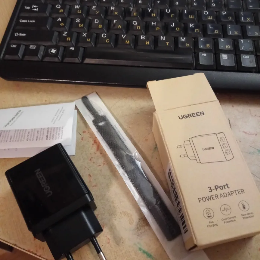 Доставка в Грецию в течение 39 дней! Упаковано и отправлено в уникальную сумку ugreen! Качественная упаковка в каждый товар, как всегда, и в подарок прилагается проволочный ремешок☺② 3 выхода макс. 3,1 а отлично подходит для зарядки электронных устройств!