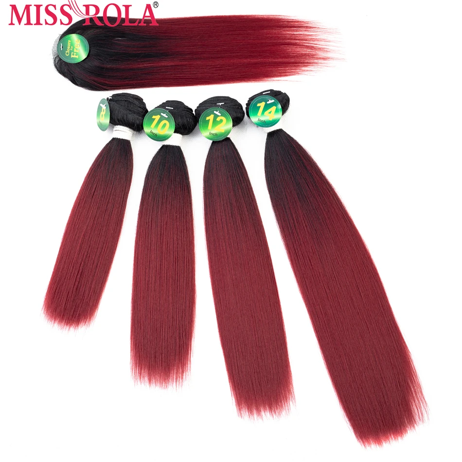 Синтетические волосы Miss Rola Yaki sraight, уток с эффектом омбре, цветные волосы 8-14 дюймов, 4 + 1 шт.упак. T1Bпряди для плетения Жуков с бесплатным закрытием