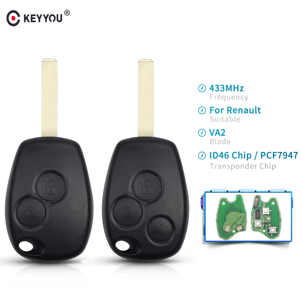 Брелок дистанционного управления KEYYOU с 2 кнопками, брелок дистанционного управления 433 МГц с чипом PCF7947 для Renault Clio Kangoo Master Modus Teddy