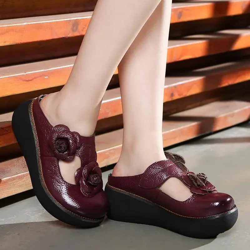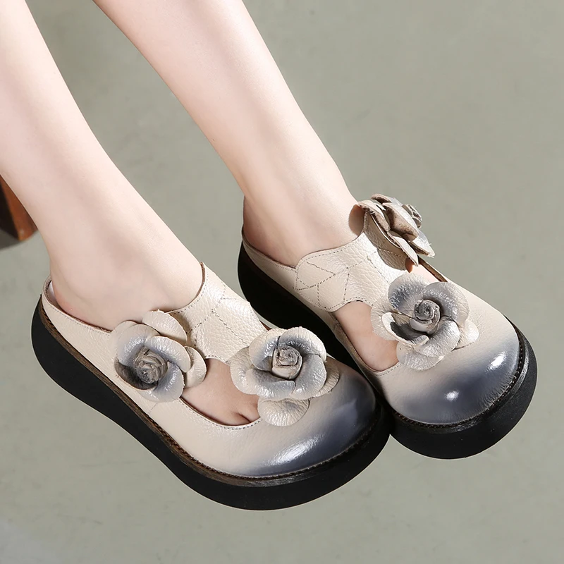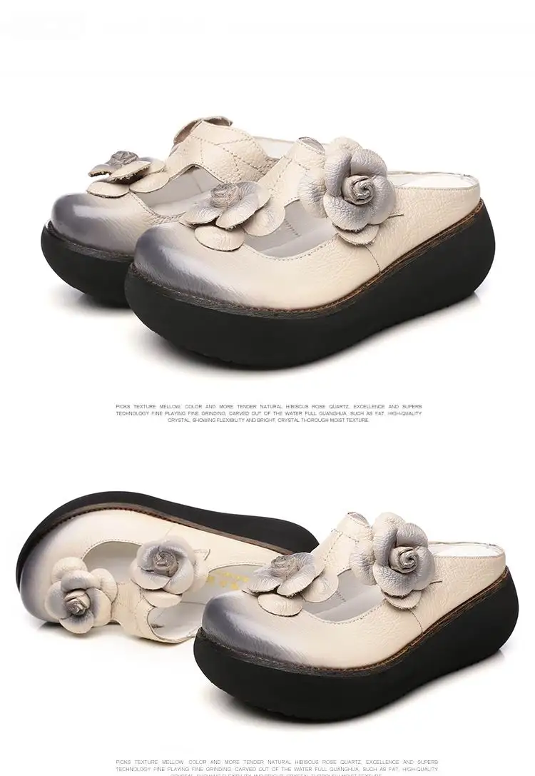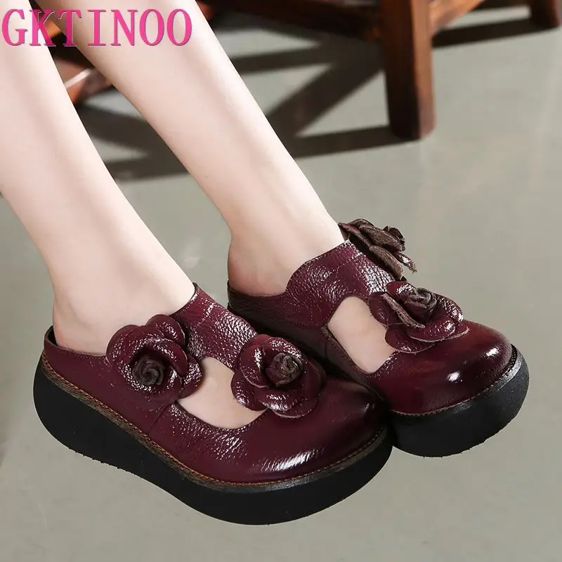 Шлепанцы GKTINOO женские из натуральной кожи, сланцы, обувь ручной работы с цветами, сандалии на платформе, танкетка, летние Тапочки