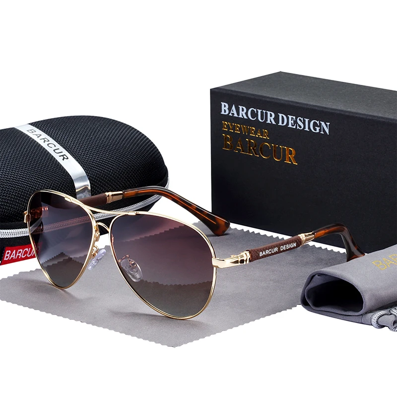 Очки солнцезащитные BARCUR мужскиеженские поляризационные, зеркальные авиаторы из титанового сплава с градиентными линзами