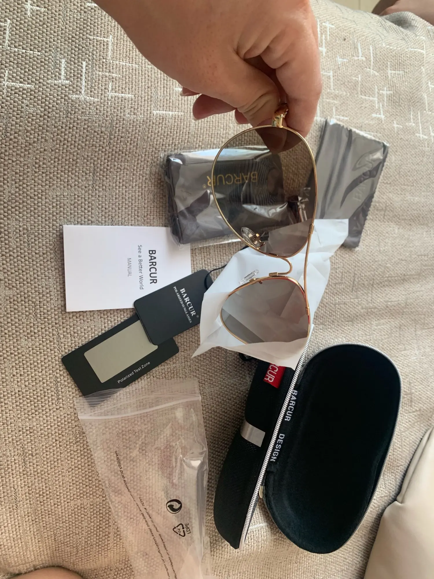 Класные очки как на видео, даже гнутся. Упаковка отличная 5.На подарок самое то. Пришло все целое даже нигде не помылась и не поцараполось. Продавца и товар рекомендую. В упаковке очки, чехол жëсткий и мягкий мешочек, тряпочка для протирки. и polarized Test Zone.....