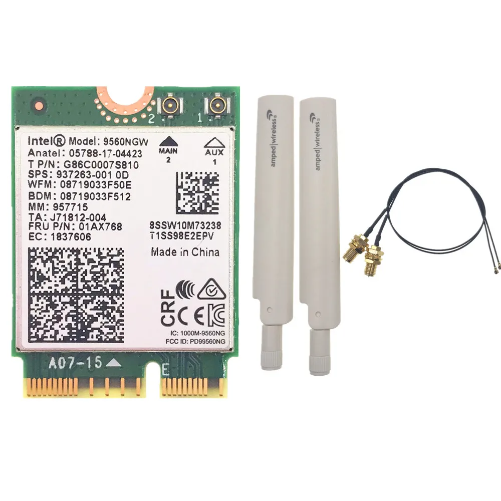 Комплект беспроводных антенн MHF4 + для Intel 9560 9560NGW, 1,73 Гбитс, Wi-Fi 802.11ac, поддержка карт Bluetooth 5,0