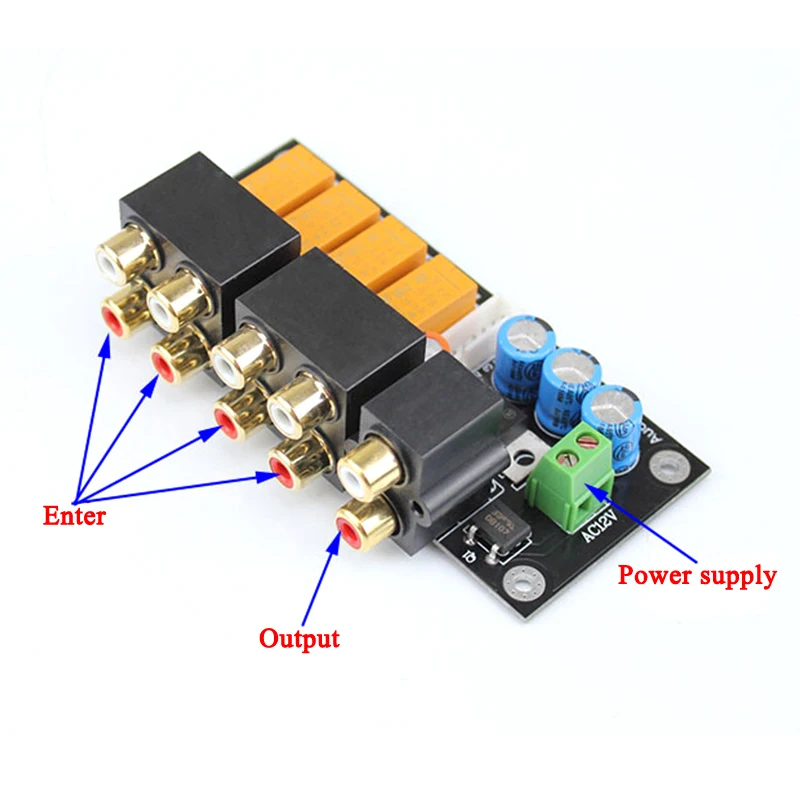 Аудиопереключатель Lusya RCA, плата выбора входа, стерео реле, 4-полосный аудиовход, зеркальный усилитель